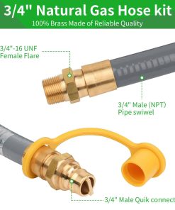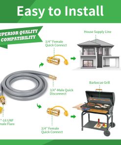 4. Lista de paquetes: Manguera de gas natural de 24 pies de 3/4″ de diámetro (tapa de descuento rápida de 3/4″ x conexión rápida de 3/4″ Rosca macho)+1 Conector rápido de 3/4″ (conexión rápida de 3/4″ x rosca hembra de 3/4″) + Llave de 7mm para orificios + Cinta selladora + Gancho de velcro + 5. Soporte de servicio: Si tiene algún problema durante el uso, proporcionaremos servicios de soporte técnico dentro de las 24 horas.