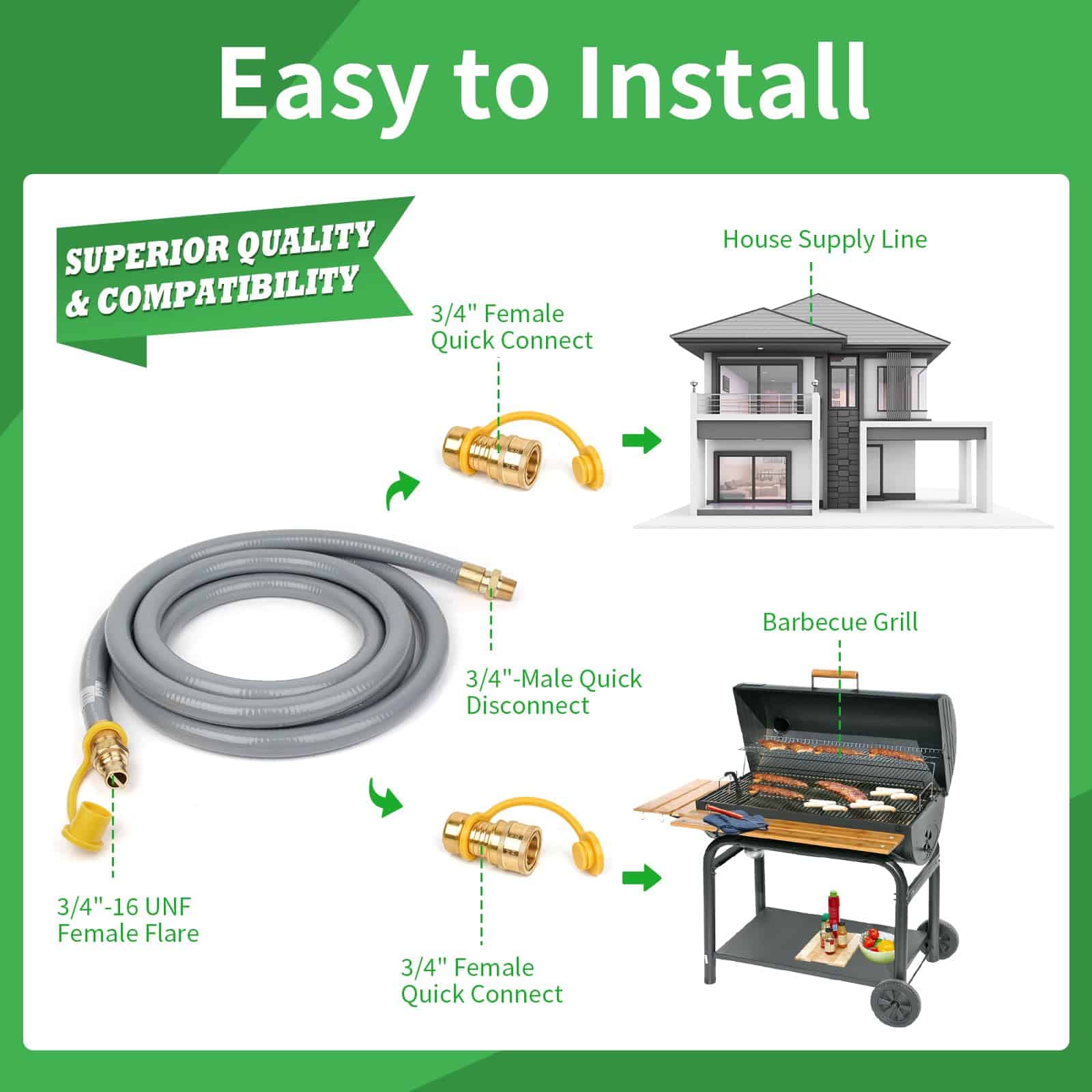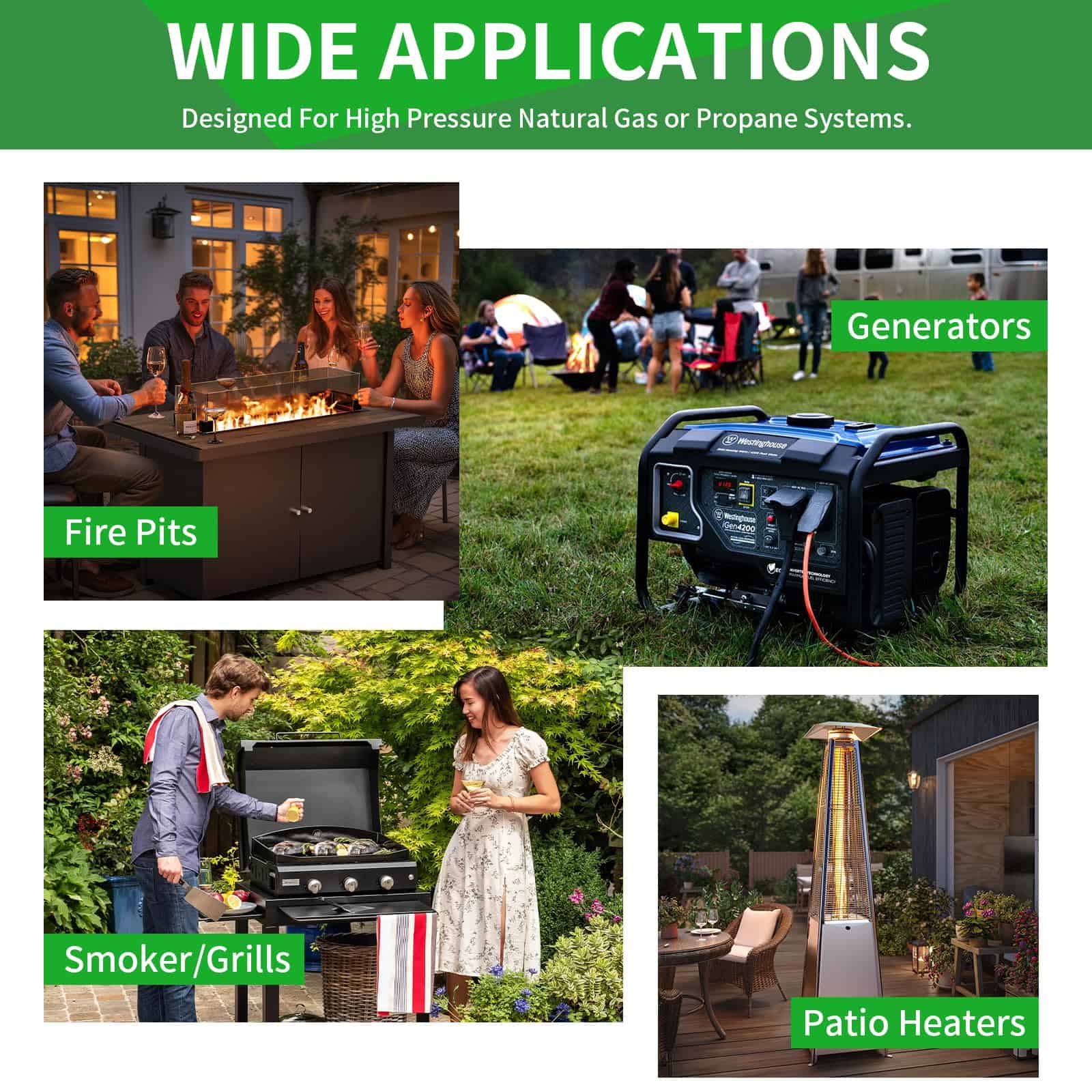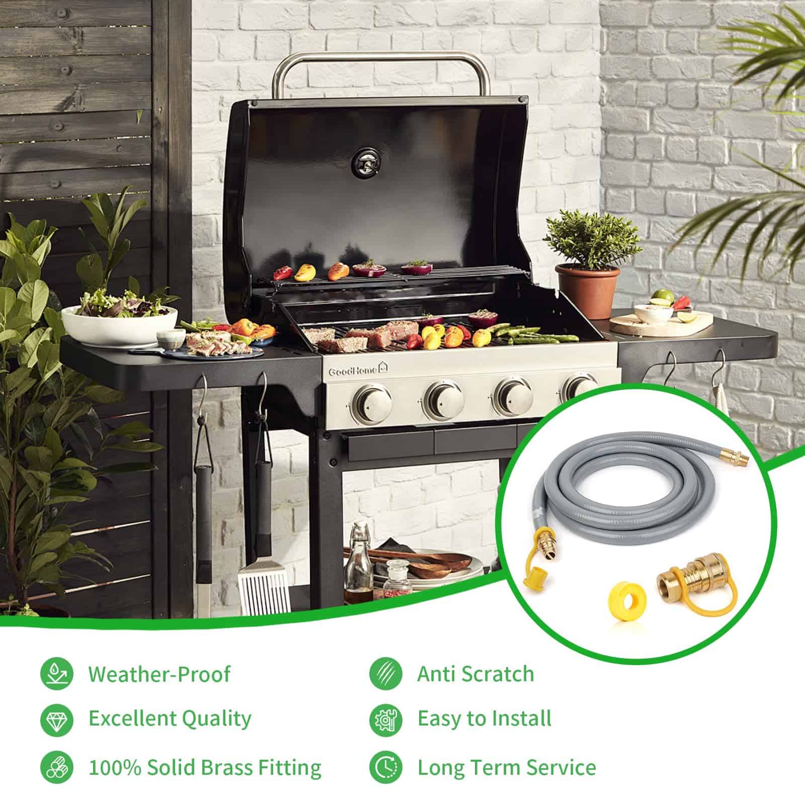 2. Compatibilidad versátil: Las mangueras de gas natural están disponibles para electrodomésticos de cocina al aire libre con una alta salida de BTU, adecuadas para parrillas de gas Weber, parrillas, ahumadores, fogatas, hornos para pizza, generadores portátiles, calentadores exteriores y más electrodomésticos de gas natural/propano.