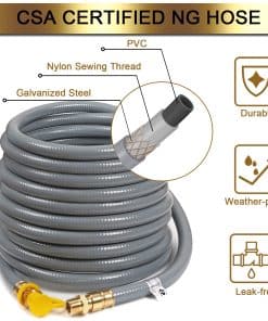 Características: La manguera de gas natural de 36 pies es larga y flexible para permitirle mover su electrodoméstico de gas a donde sea conveniente. La Manguera de Gas Natural se puede utilizar para electrodomésticos de cocina al aire libre de alto rendimiento. Construcción de acero inoxidable para durabilidad y longevidad.
