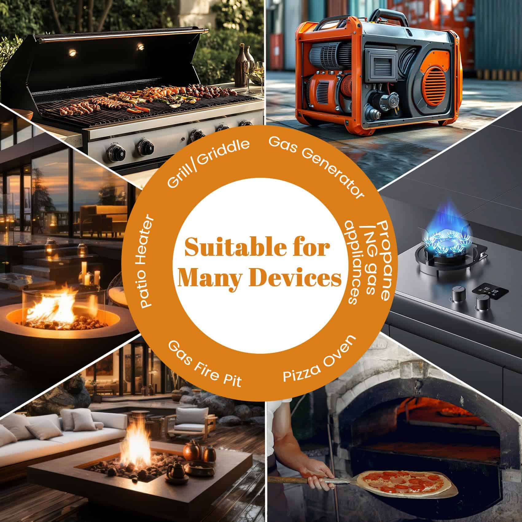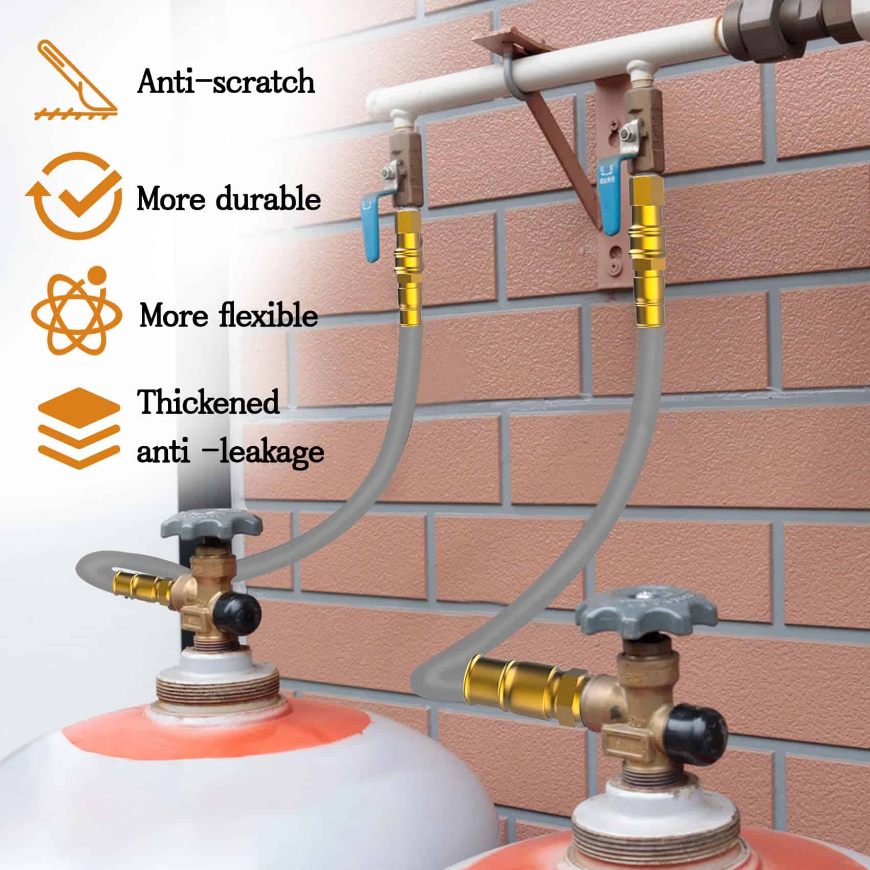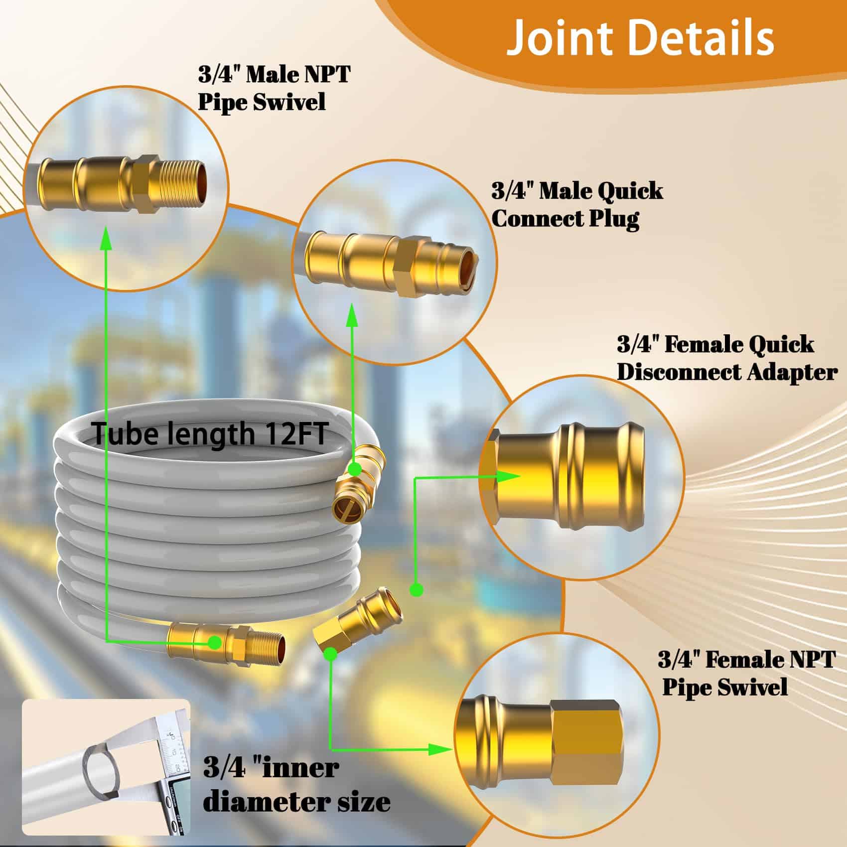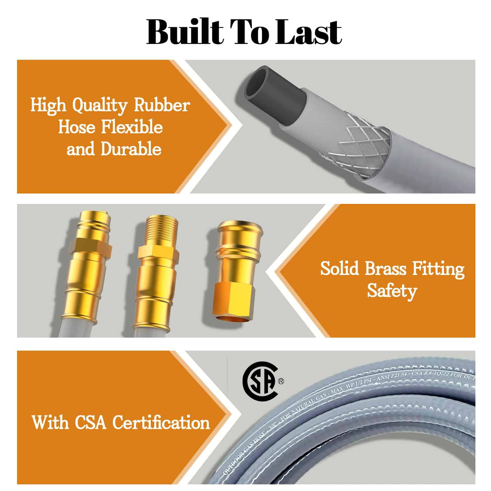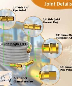Manguera de Gas Natural OnedeF 3/4″ ID 30FT, Manguera de Conexión Rápida de Gas Natural de 3/4 para Generador, Calentador de Patio, Parrilla, Plancha y Electrodoméstico de Propano al Aire Libre Ng/Lp. La manguera de gas natural de 30FT y 3/4″ ID para generador con conector rápido es fácil de instalar. Proporciona una conexión segura y operación libre de fugas. Y el adaptador se desconectará automáticamente cuando desconecte la manguera. Hecho con caucho de alta calidad y accesorios de latón macizo, esta manguera de gas natural de 3/4 está certificada por CSA y está construida para durar. Presión de Trabajo Máxima: 1/2 PSI (3.5Kpa). La manguera de 3/4 de pulgada de diámetro interno puede proporcionar suficiente gas a sus electrodomésticos de alto BTU. Adecuado para una amplia gama de aplicaciones, incluyendo parrillas de gas, planchas, ahumadores, fogatas, hornos de pizza, generadores portátiles, calentadores de patio y más. La caja incluye la manguera de gas natural de 30FT y 3/4″ con tubo giratorio macho NPT de 3/4″ y enchufe macho de conexión rápida, un accesorio de latón macizo con adaptador hembra de desconexión rápida de 3/4″ y tubo giratorio hembra NPT. Garantía de 1 Año: Puede encontrarnos para obtener ayuda si tiene algún problema durante el uso. Sin duda le ayudaremos en un plazo de 24 horas laborables.