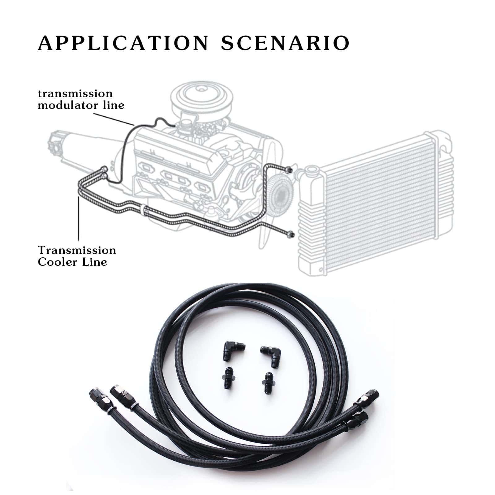 La Manguera de Línea de Enfriamiento de Transmisión 6AN es compatible con una variedad de enfriadores de transmisión, incluyendo modelos como 4L60, 700R4, TH350 y TH400, entre otros. Con un rango de temperatura de -76 F a 446 F y una resistencia máxima a la presión de 3000 psi, esta manguera está diseñada para soportar ambientes extremos. Fabricada con nailon negro en el exterior y material premium PTFE en el interior, junto con conectores de aluminio de alta calidad, esta manguera garantiza durabilidad y resistencia. El kit incluye todo lo necesario para la instalación, como dos mangueras de 7 pies con conexiones rectas y accesorios adicionales. Es importante tener en cuenta que el tubo PTFE es rígido y puede requerir instalación profesional. En general, esta manguera de línea de transmisión es una solución perfecta para fugas o problemas de enfriamiento en transmisiones automáticas.