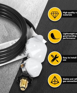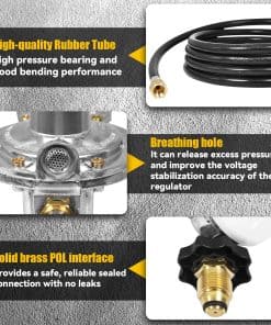 1. Material premium: La manguera de propano F273684 con accesorios de regulador está fabricada en caucho de alta calidad y la parte de acoplamiento está hecha de latón sólido. Segura y sin fugas. Para conectar equipos de propano a tanque de gas de 20-100 lb.