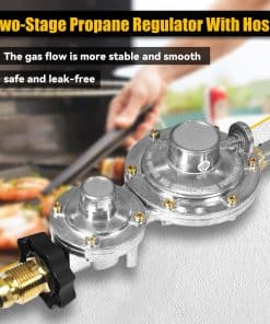 2. Regulador de propano de 2 etapas: La manguera de propano F273684 está equipada con un regulador de propano de dos etapas para que el flujo de gas sea más estable y suave, seguro y sin fugas.