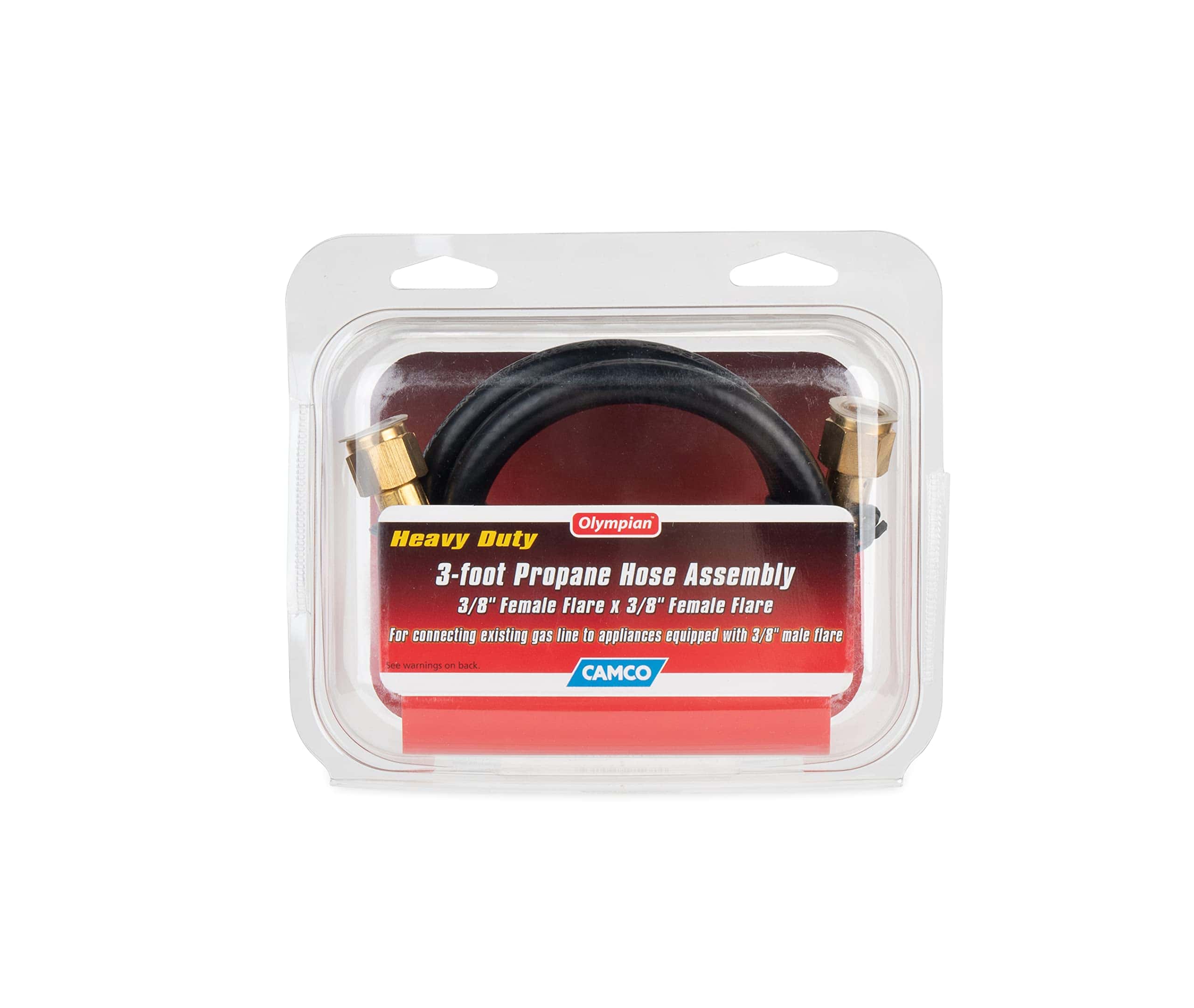 La Manguera de Propano de 3 pies de Camco está diseñada para conectar su suministro de gas existente a un electrodoméstico con conexión macho de 3/8″. Tiene conexiones giratorias hembra de 3/8″ en ambos extremos. Perfecta para usar con nuestros Calentadores Olympian Wave.