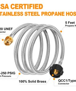 La manguera de propano es ampliamente utilizada para conectar tanques de propano de 1 libra a tanques de propano de 20 libras, y es adecuada para parrillas Weber Q, estufas de campamento Coleman, parrillas Blackstone de 17 y 22 pulgadas, calentadores portátiles, y más. Es el mejor accesorio para acampar, calentar y cocinar al aire libre. Esta manguera de propano está hecha de caucho de alta calidad y latón resistente, con una funda trenzada de acero inoxidable que mejora significativamente su durabilidad y resistencia a la corrosión. Ya sea en invierno frío u otros entornos adversos, esta manguera de propano mantiene una excelente flexibilidad. El producto está certificado por la CSA, lo que garantiza la seguridad y estabilidad de la manguera para parrilla de gas. Si tienes algún problema con el uso después de la compra, contáctanos de inmediato.