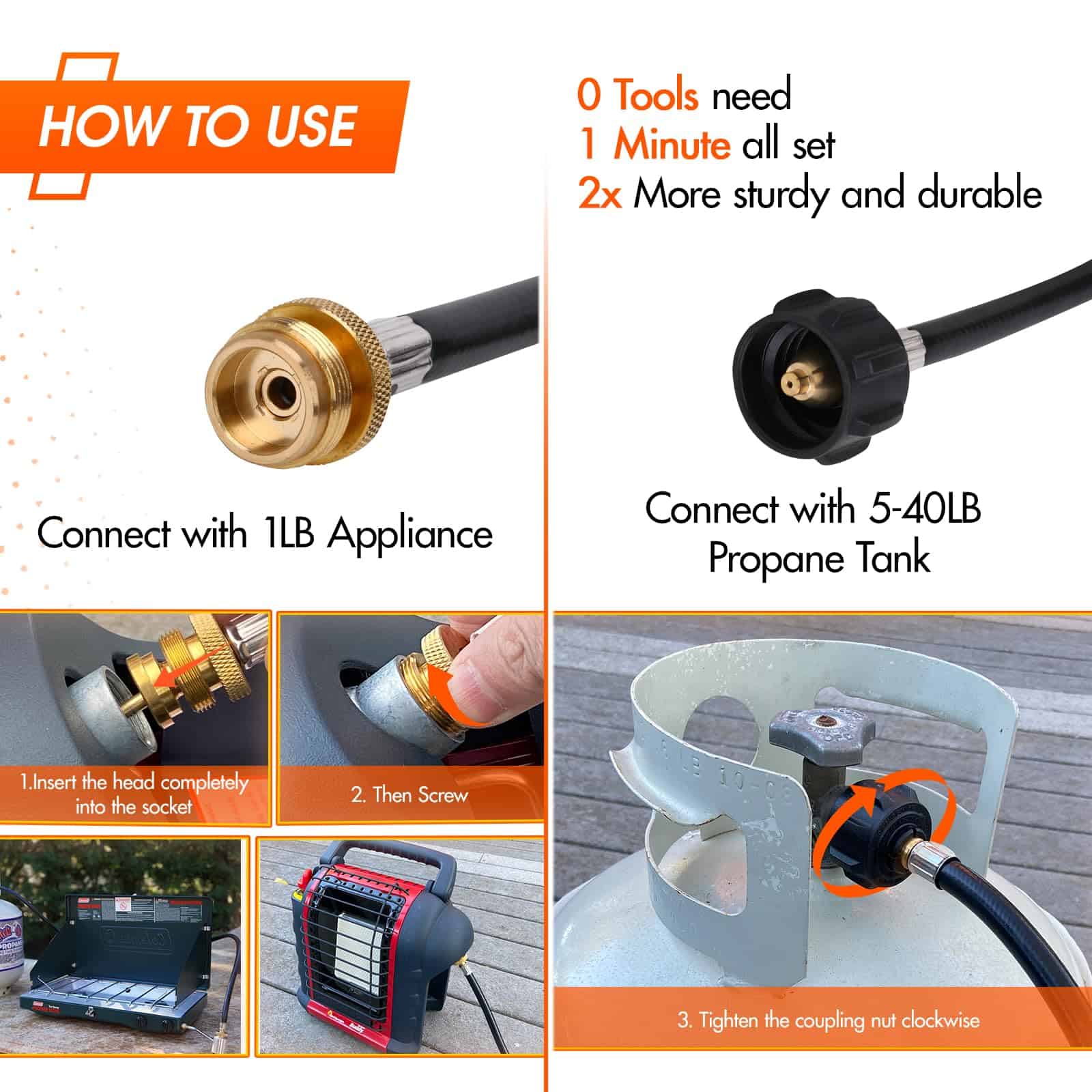 Además de su facilidad de uso, este adaptador de propano ecológico promueve la conservación del medio ambiente al reducir los desechos de las botellas de propano desechables. Al utilizar un tanque de propano de 20lb, puedes reutilizar y recargar tu manguera convertidora, contribuyendo a un planeta más verde. Perfecta para camping, tailgating, calefacción o parrillas al aire libre, esta manguera adaptadora es versátil y duradera.