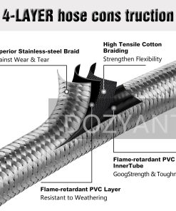 4. Seguridad y resistente a la corrosión – Certificado CSA – pasa el certificado CSA para tu seguridad. Proporciona una conexión segura y hermética entre la parrilla o fogata y el tanque, sin fugas de gas, garantiza la seguridad al usar la parrilla, no hay problemas con el regulador o gas, el flujo de aire se mantiene estable y a niveles adecuados. Cuerpo de manguera de acero inoxidable de alta calidad y accesorios de latón macizo.