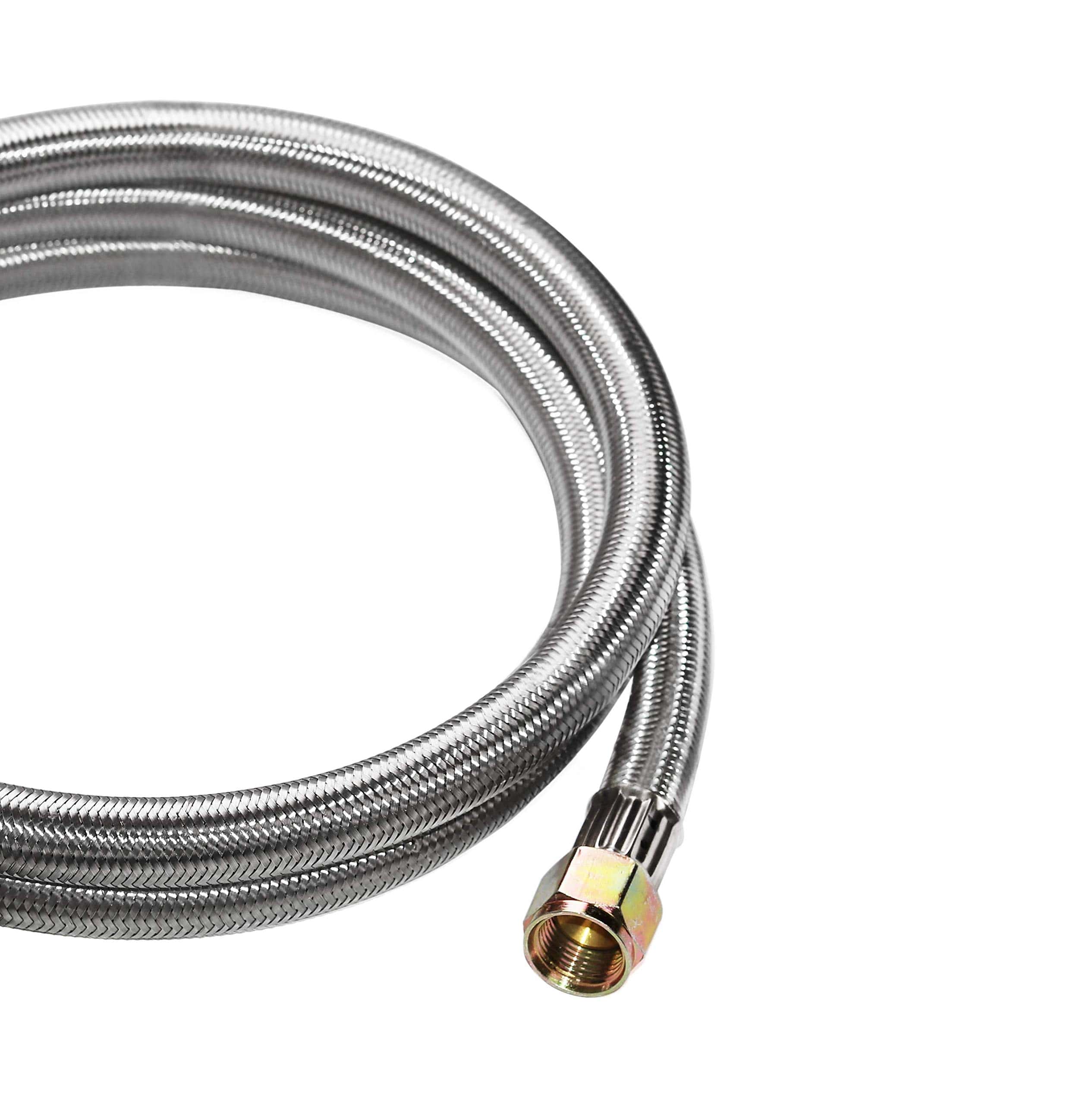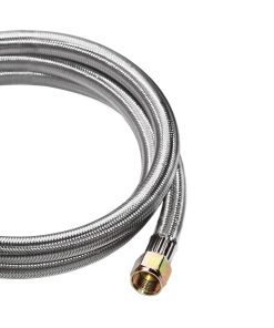 1. Manguera de regulador de propano duradera y trenzada de acero inoxidable. Equipada con medidor de tanque de propano. Conexión de depósito de tipo-1 (QCC-1) – se adapta a todos los electrodomésticos con una conexión de tipo 1. Rosca hembra de 3/8″. Rosca de tuerca de tuerca 5/8″-18UNF. Tuerca giratoria. Manguera de LP de 5/16″ de diámetro.