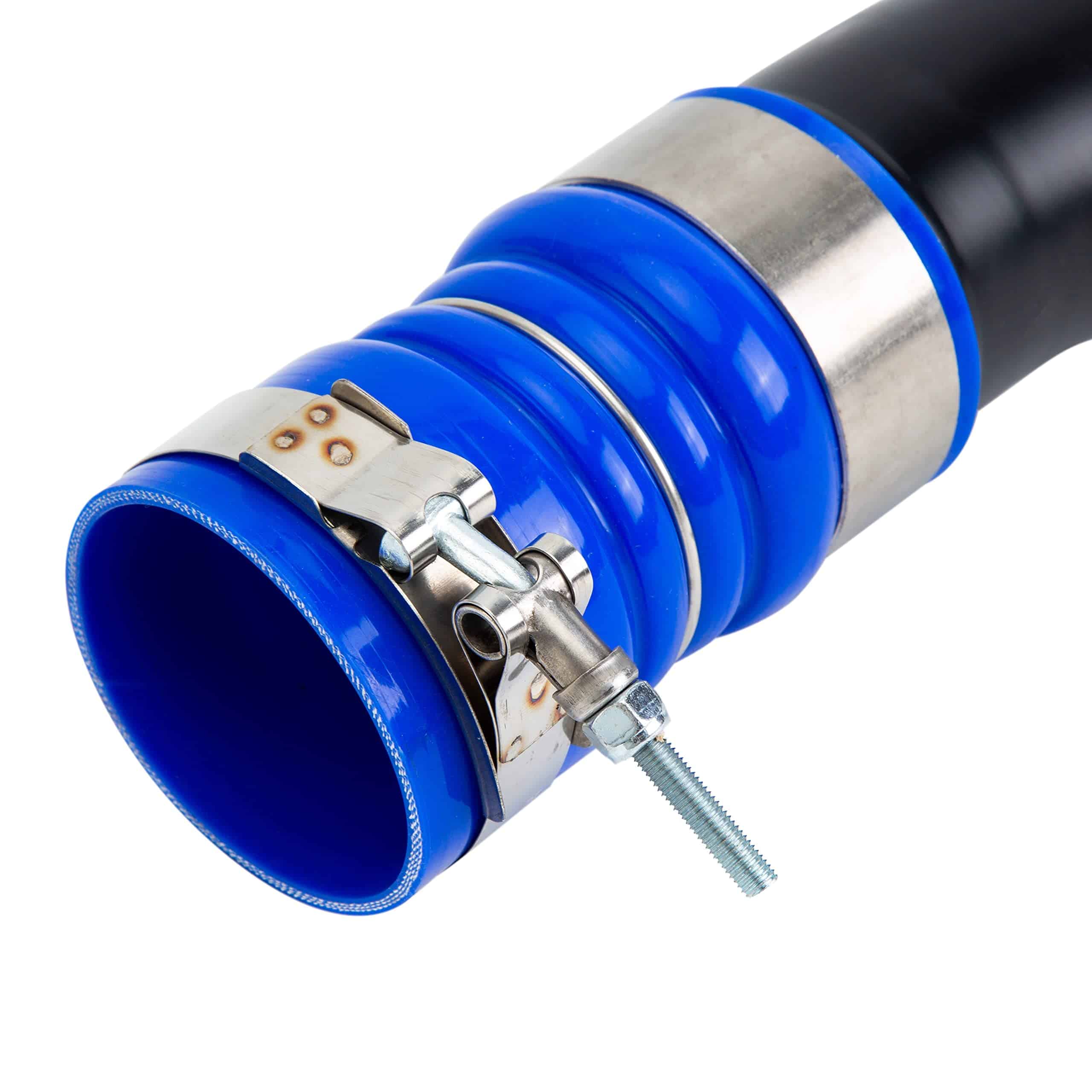 Construcción Ligera – el conducto de entrada está construido de aluminio ligero de alta resistencia Resistente a la Corrosión – el conducto de aluminio tiene un recubrimiento negro electroforético para protegerlo de los elementos. Mangueras de Silicona – Las botas de manguera turbo de silicona premium son de construcción multicapa para resistir la presión del impulso y están sujetas de forma segura al conducto de aluminio. Abrazaderas de Manguera – Las nuevas abrazaderas de manguera de acero inoxidable cuentan con tuercas de bloqueo de nylon de alta resistencia para garantizar conexiones seguras de mangueras.