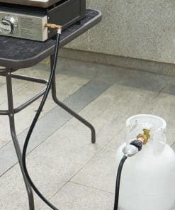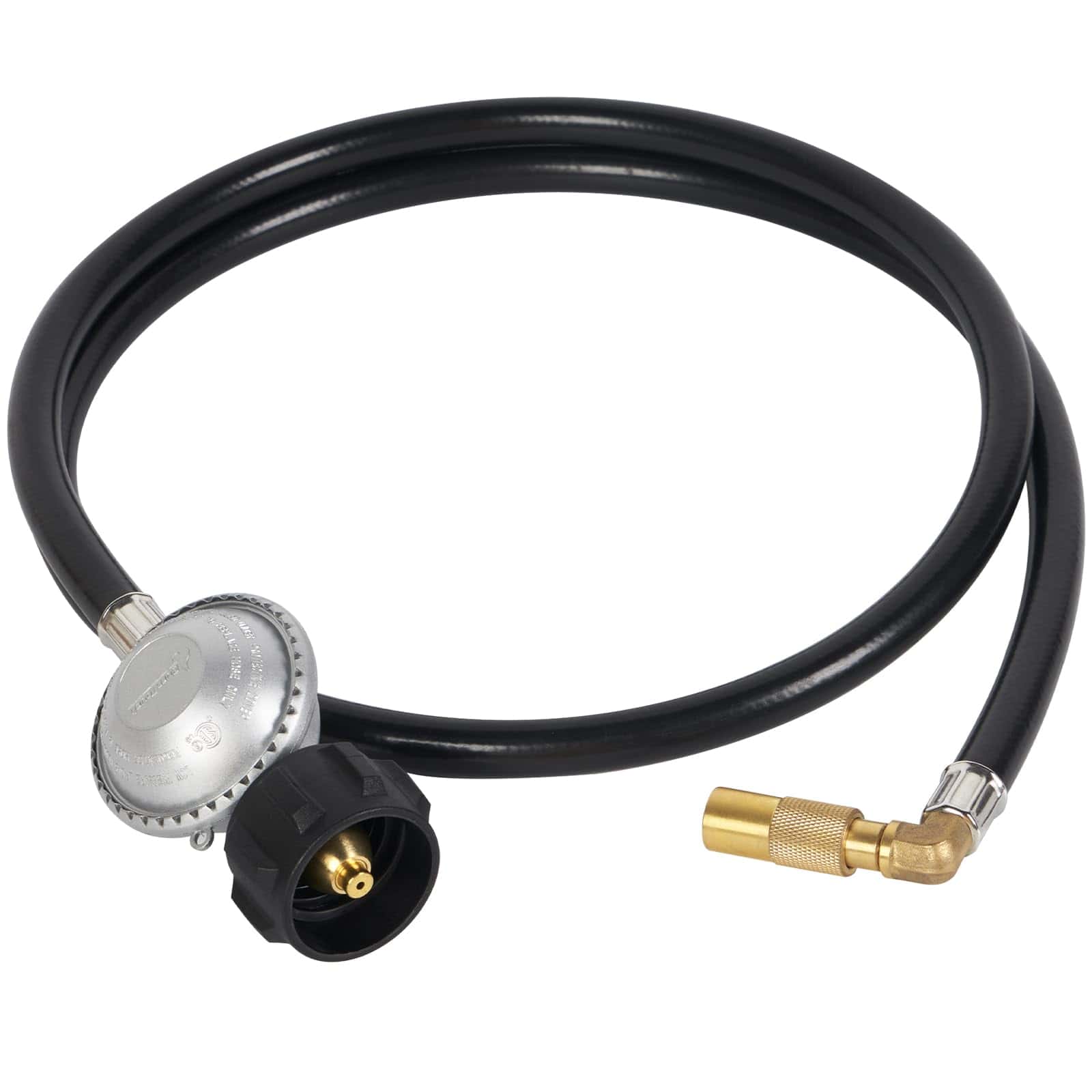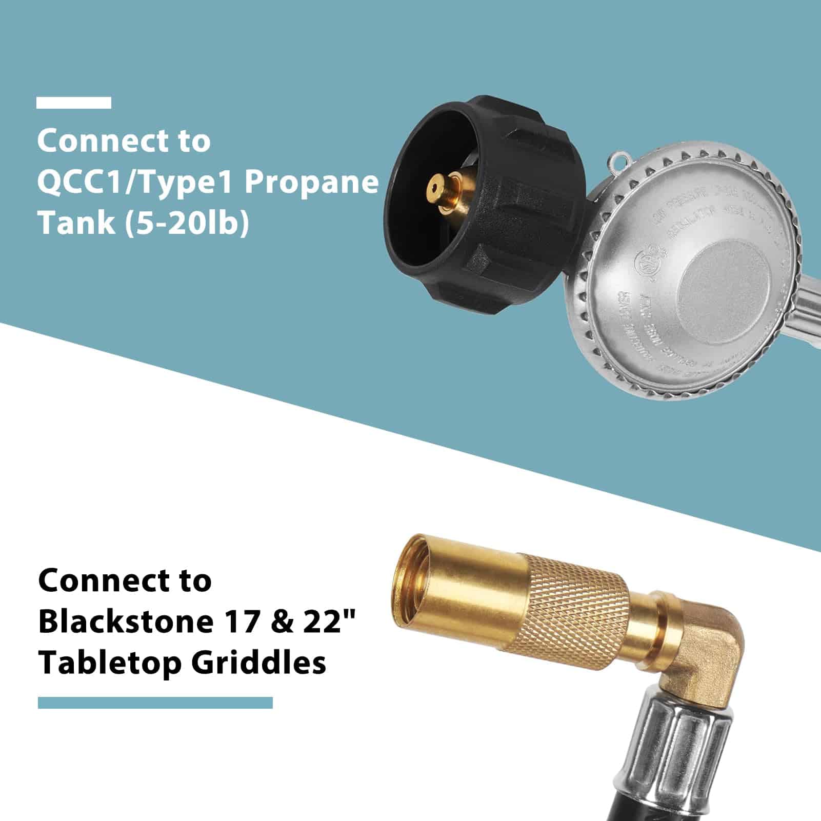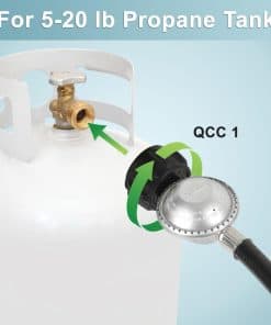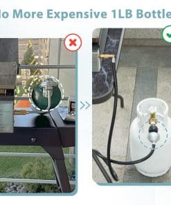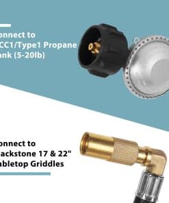 Manguera reguladora de propano de 5 pies SHINESTAR diseñada para conectar tu parrilla de mesa Blackstone de 17″ y 22″ a tanques de propano más grandes, ofreciendo una solución rentable para prolongar el uso de la parrilla sin necesidad de adquirir constantemente cilindros de propano de 1 lb costosos. La longitud de 5 pies de la manguera brinda flexibilidad en la ubicación de la parrilla, mientras que el diseño mejorado del adaptador permite dirigir la manguera en diferentes direcciones para usar la parrilla sin obstrucciones. Fabricada con latón sólido y manguera de goma resistente a la intemperie, esta manguera asegura una conexión segura y sellada entre la parrilla y el tanque. Para evitar problemas de fuga, se recomienda verificar el tanque de propano, inspeccionar la empaquetadura en busca de daños y asegurarse de que el regulador entre en la válvula del cilindro en línea recta.