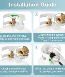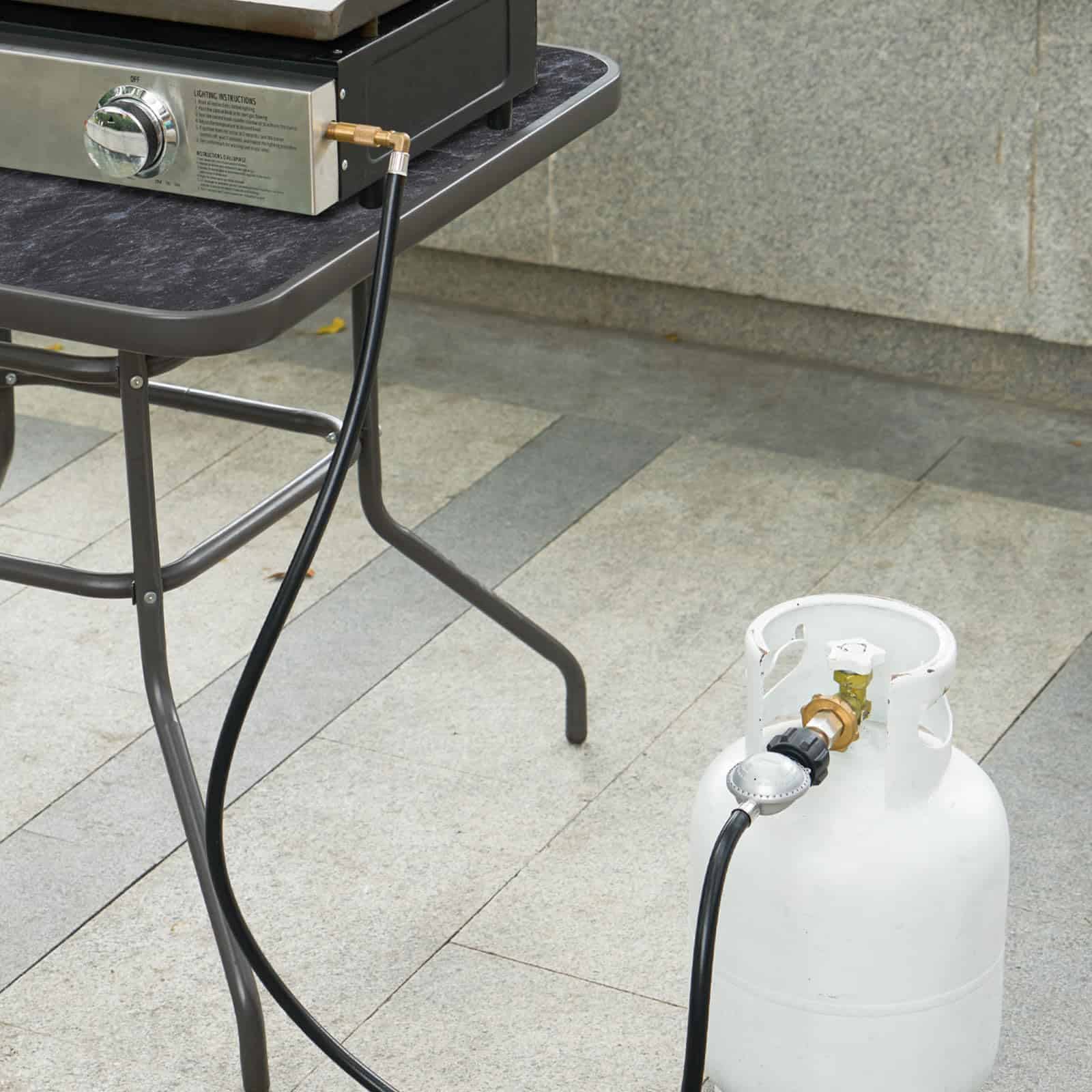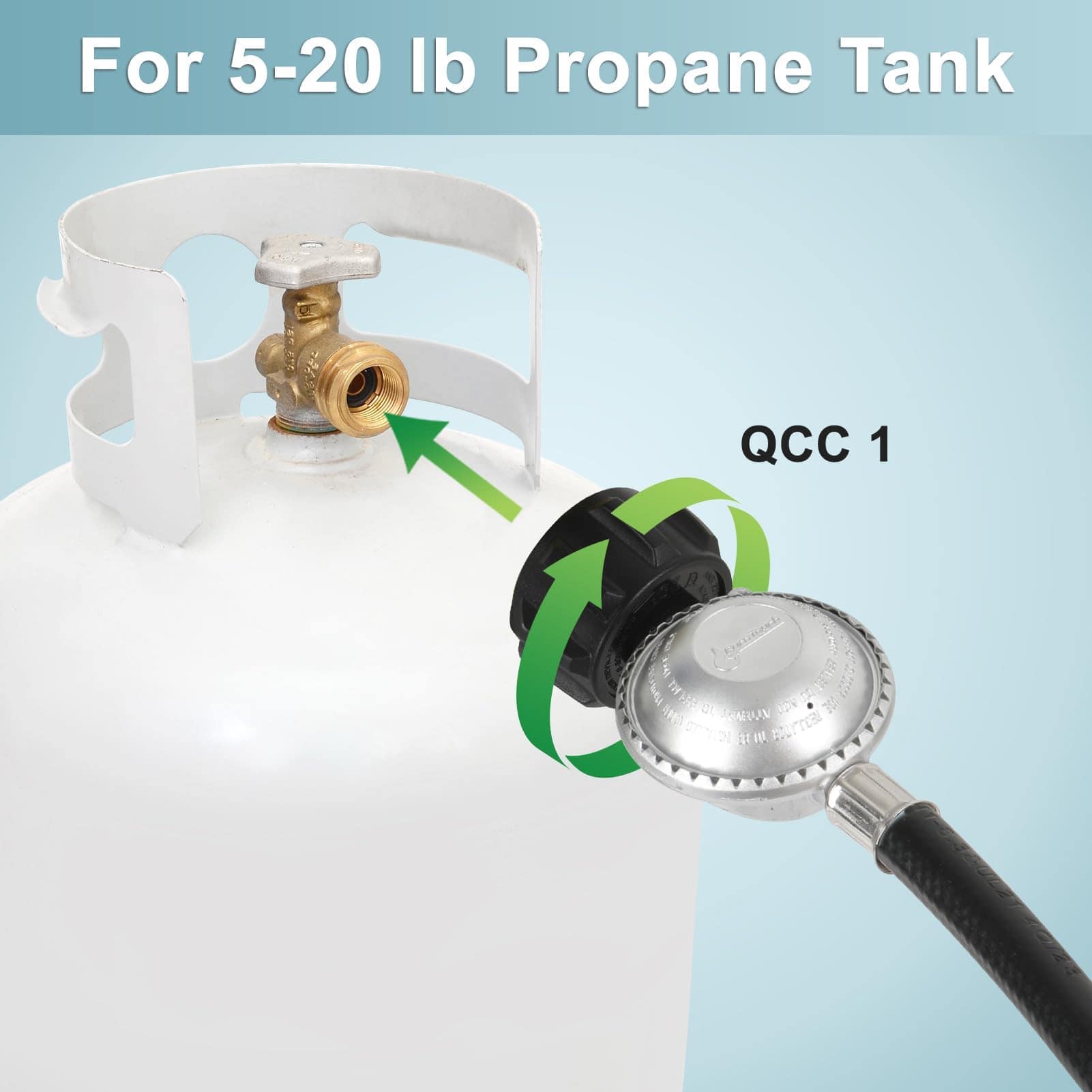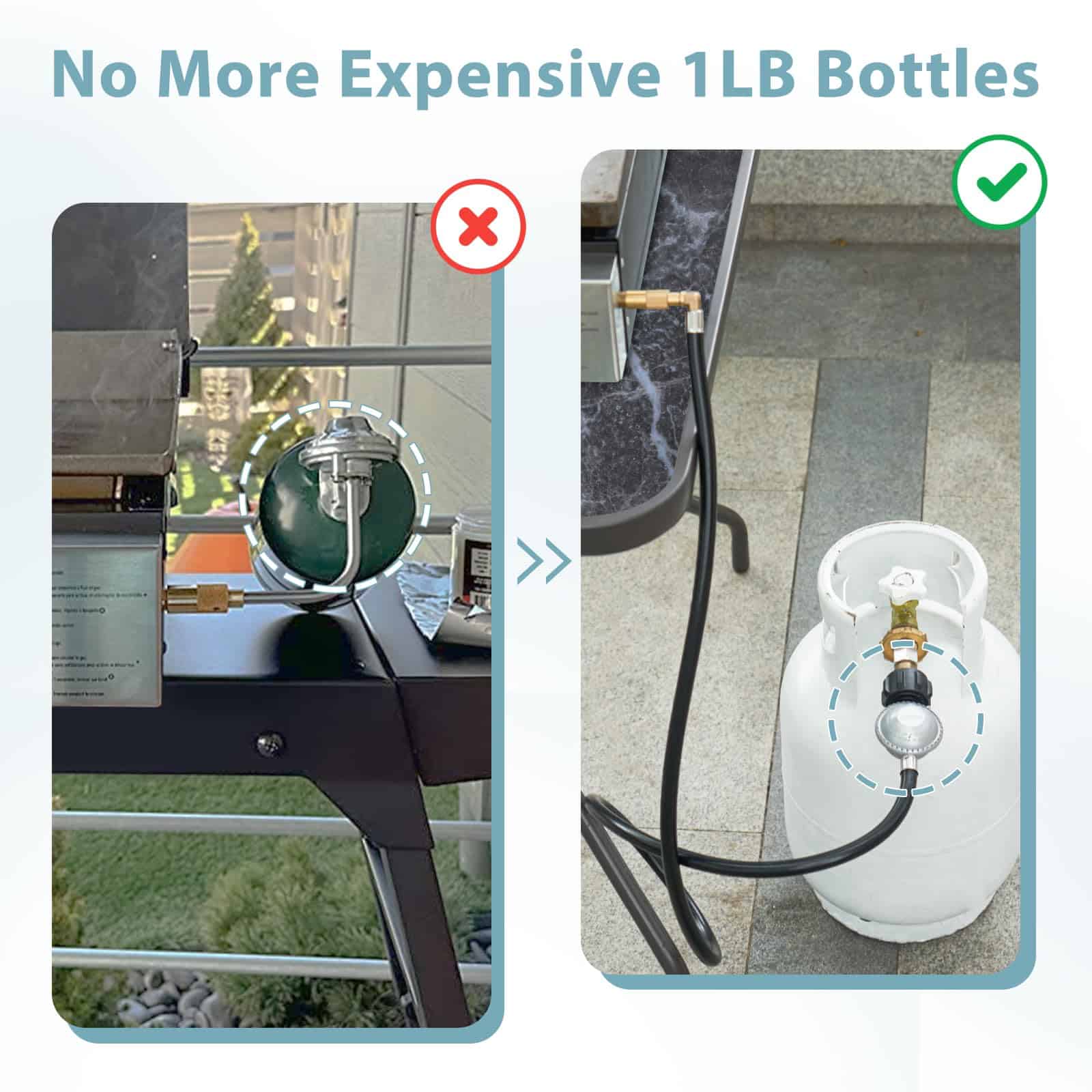 Manguera reguladora de propano de 5 pies SHINESTAR diseñada para conectar tu parrilla de mesa Blackstone de 17″ y 22″ a tanques de propano más grandes, ofreciendo una solución rentable para prolongar el uso de la parrilla sin necesidad de adquirir constantemente cilindros de propano de 1 lb costosos. La longitud de 5 pies de la manguera brinda flexibilidad en la ubicación de la parrilla, mientras que el diseño mejorado del adaptador permite dirigir la manguera en diferentes direcciones para usar la parrilla sin obstrucciones. Fabricada con latón sólido y manguera de goma resistente a la intemperie, esta manguera asegura una conexión segura y sellada entre la parrilla y el tanque. Para evitar problemas de fuga, se recomienda verificar el tanque de propano, inspeccionar la empaquetadura en busca de daños y asegurarse de que el regulador entre en la válvula del cilindro en línea recta.