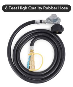 1. La manguera de 6 pies de largo ofrece longitud suficiente. Tendrás la flexibilidad de instalar el tanque de gas en cualquier lugar alrededor de tu estufa o parrillas.