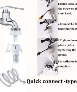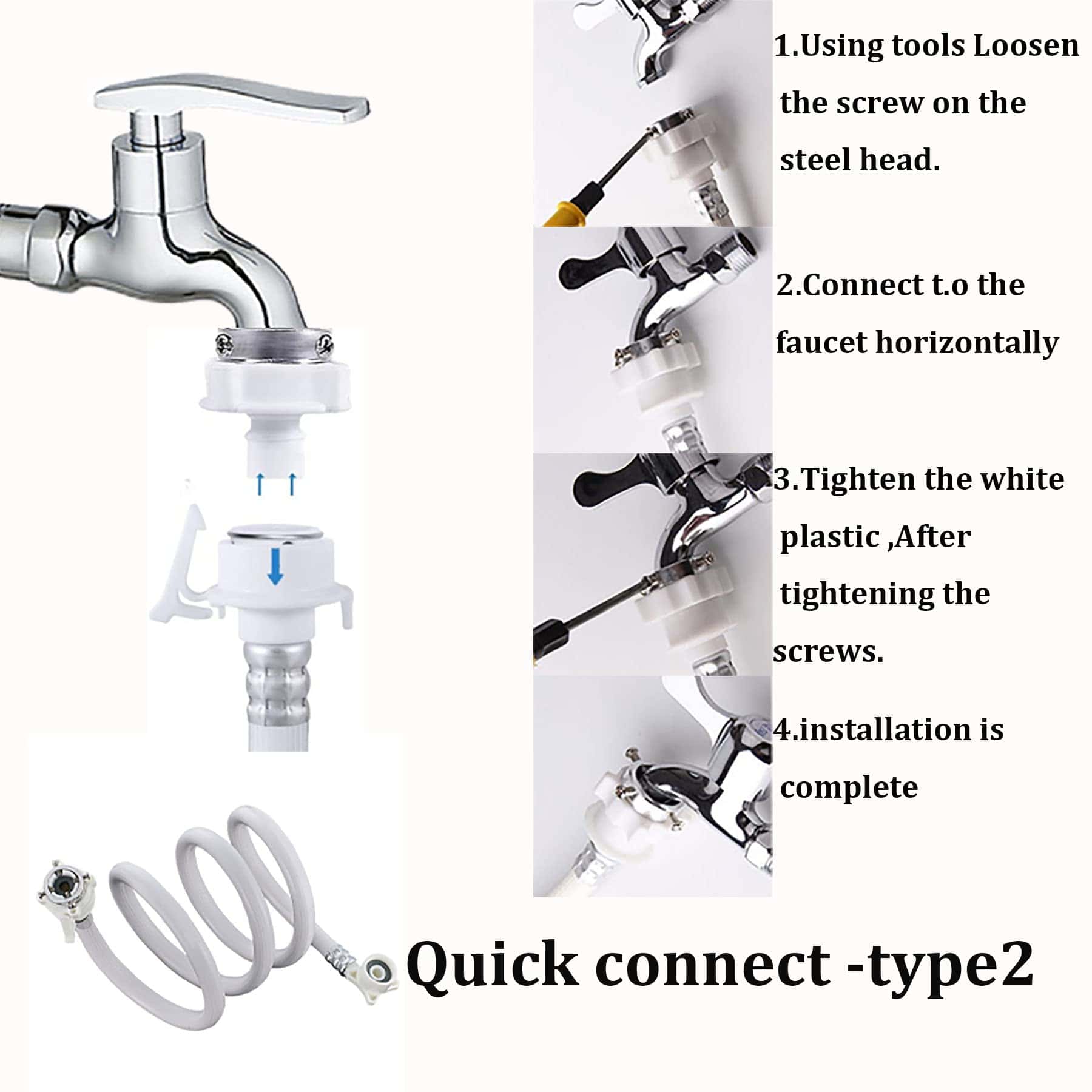 4. Fácil Instalación: Mangueras de lavadora portátil, adaptador de grifo para manguera de lavadora portátil, características de mangueras de lavadora con conexión rápida de codo de 90 grados para una fácil instalación de mangueras de lavadora.