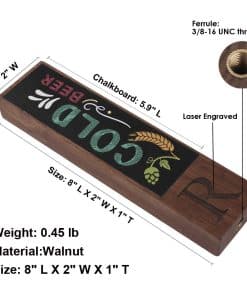 Estas son manijas de grifo de kegerator únicas con monograma para restaurantes, bares, fabricantes de refrescos, cerveceros caseros, eventos, bodas y ¡mucho más! La magia de la manija de grifo proviene de una superficie de pizarra borrable de doble cara que te permite escribir lo que tengas en el barril. Medidas: Aproximadamente 8″ de largo x 2″ de ancho x 1″ de grosor. Inserto de pizarra: 5.9″ de largo. Rosca insertada: Rosca UNC 3/8». Material: madera de nogal natural. Grabado: Un lado. El grifo no está incluido. Pizarra en la parte delantera de la manija para escribir tu cerveza actual.