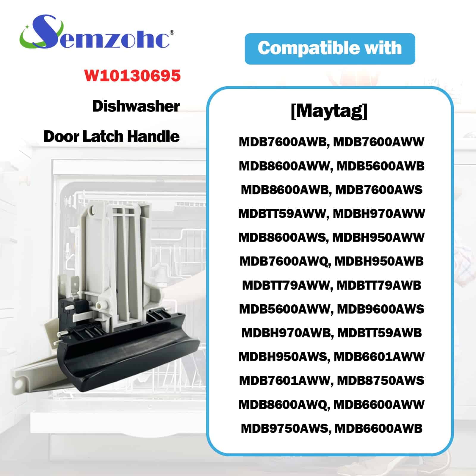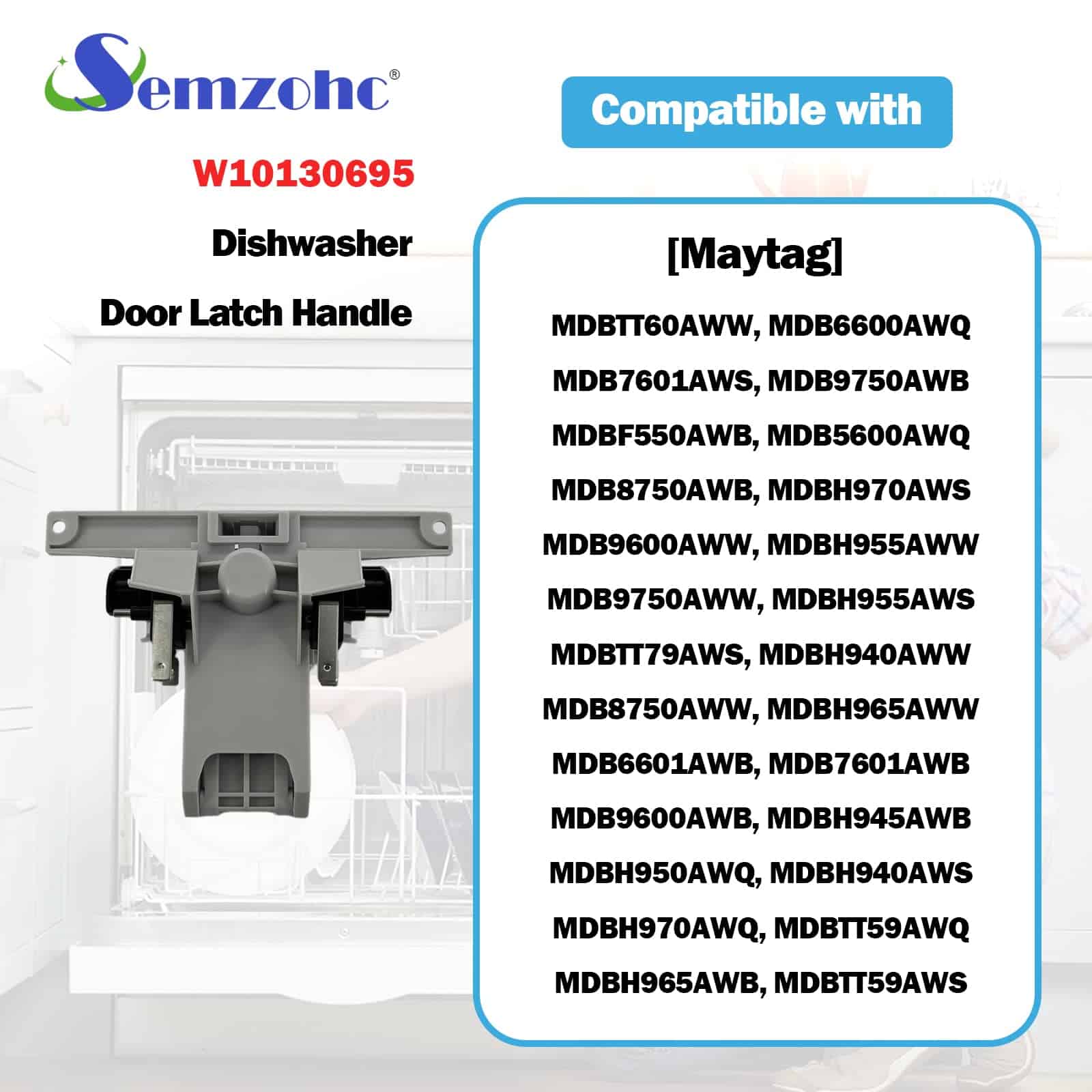 La manija de la puerta del lavavajillas W10130695 se encuentra en la puerta de tu lavavajillas e incluye la manija negra, el pestillo y 2 interruptores. Si la puerta no se abre o cierra, los interruptores de la puerta no se activan, hay falla en el pestillo de la puerta o hay fugas, necesitarás reemplazar esta manija y pestillo de la puerta. Al reparar en lugar de comprar uno nuevo, podrás restaurar el funcionamiento de tu lavavajillas. Este reemplazo es compatible con varios modelos de lavavajillas Amana, Jenn-Air y Maytag. Antes de la entrega, se verificó la calidad de este pestillo de la puerta del lavavajillas y el fabricante realizó pruebas exhaustivas para garantizar que la manija del lavavajillas recibida por cada cliente se pueda usar normalmente (cumple con el estándar OEM). Ofrecemos garantía de cinco años: si encuentras problemas de calidad con esta manija del lavavajillas durante su uso, contáctanos. Resolveremos tus problemas en un plazo de 12 horas y reemplazaremos la nueva pieza de repuesto del lavavajillas de forma gratuita. Fácil de instalar, esperamos que tengas una agradable experiencia de bricolaje. Si tienes alguna pregunta sobre la instalación o el producto, contáctanos, estaremos encantados de ayudarte en cualquier momento.