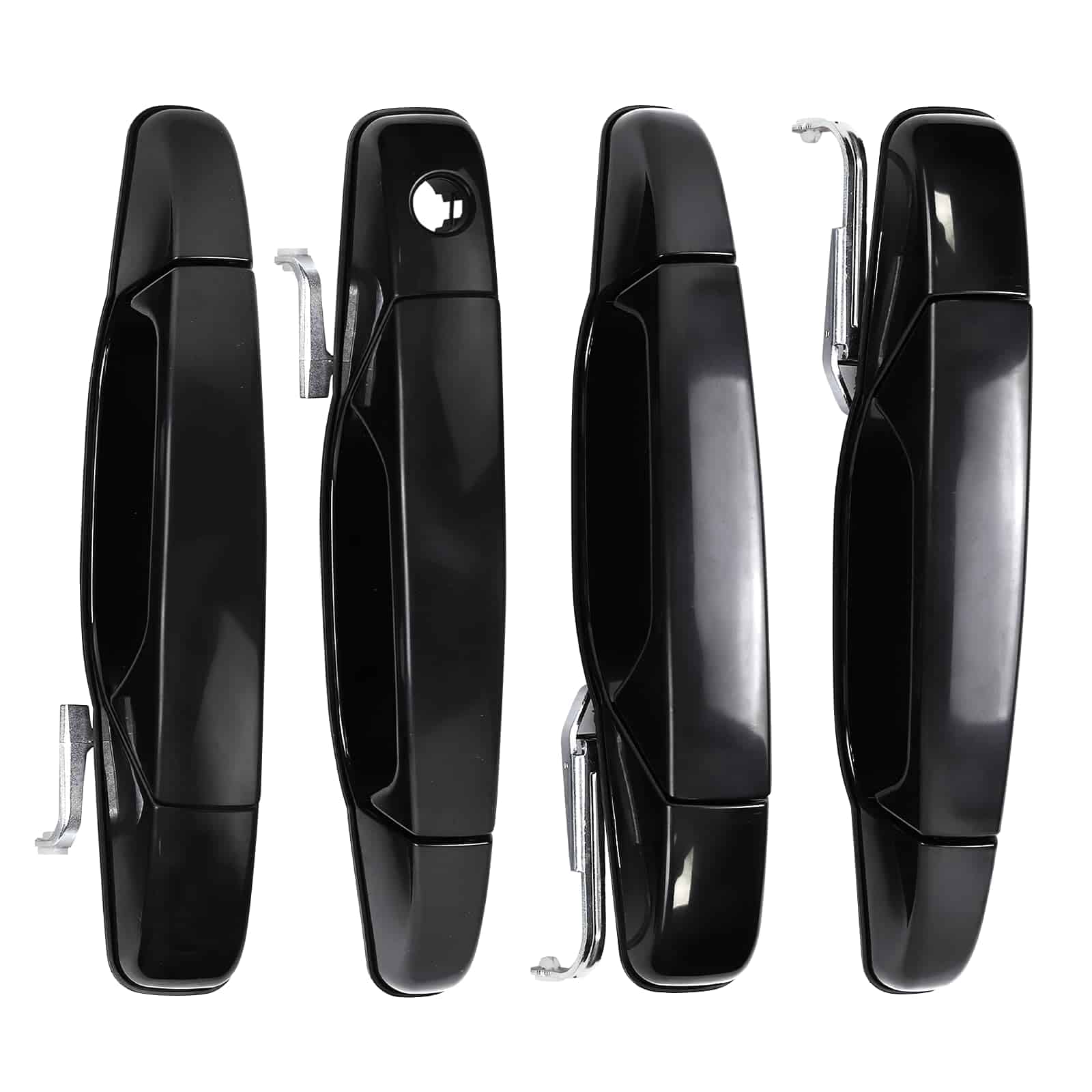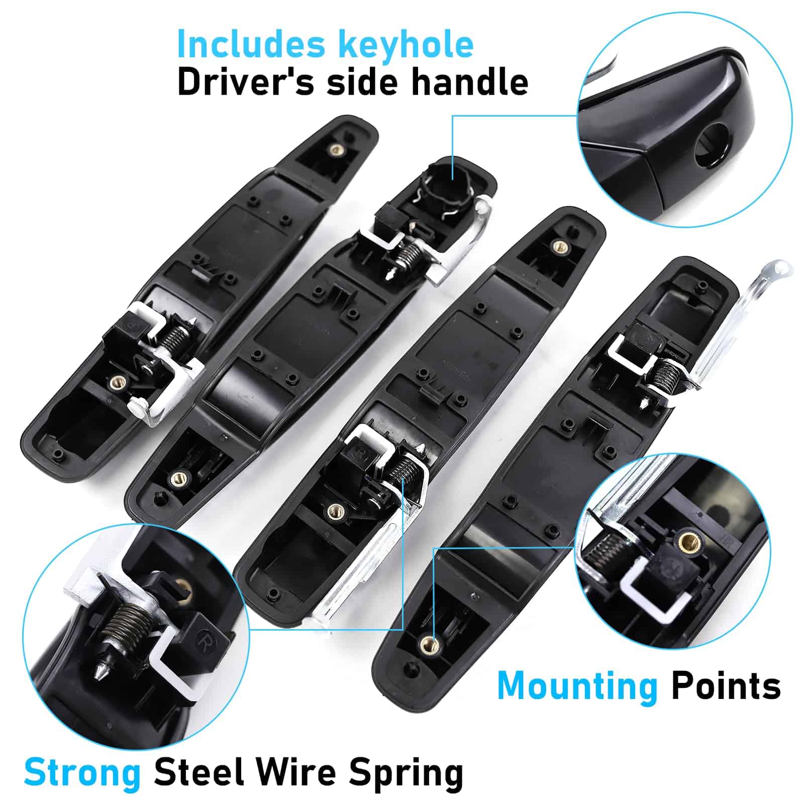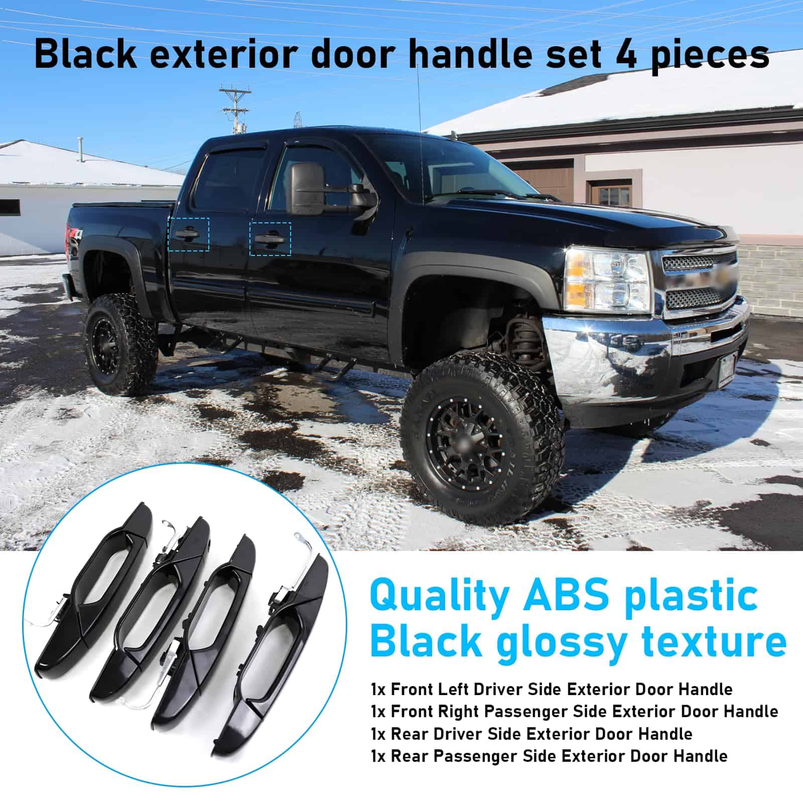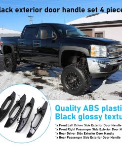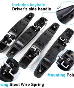 5. Paquete incluido: Juego de manijas de la puerta exterior de 4 piezas en negro 1x Manija de la puerta exterior del lado izquierdo delantero del conductor, 1x Manija de la puerta exterior del lado derecho delantero del pasajero, 1x Manija de la puerta exterior del lado izquierdo trasero del conductor, 1x Manija de la puerta exterior del lado derecho trasero del pasajero