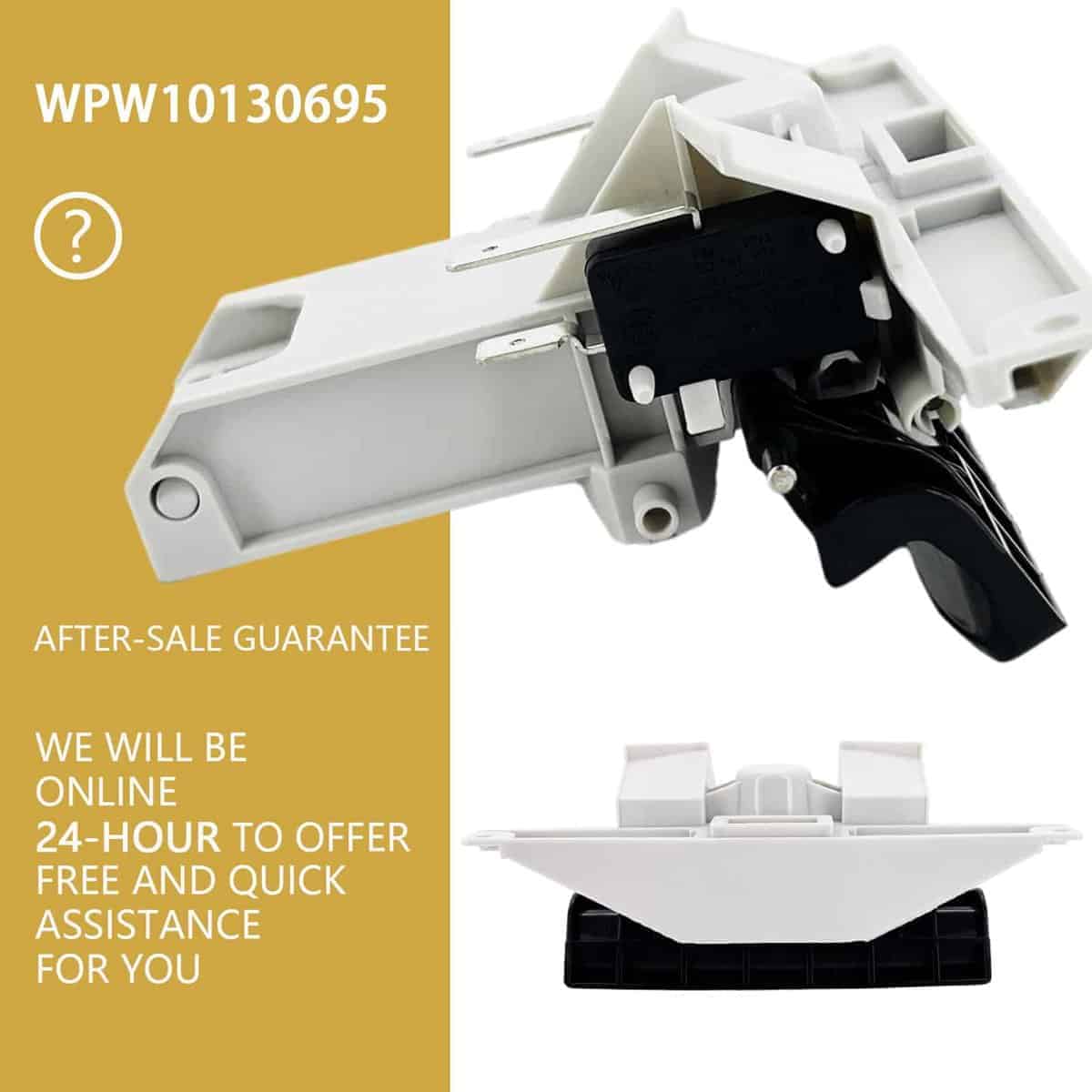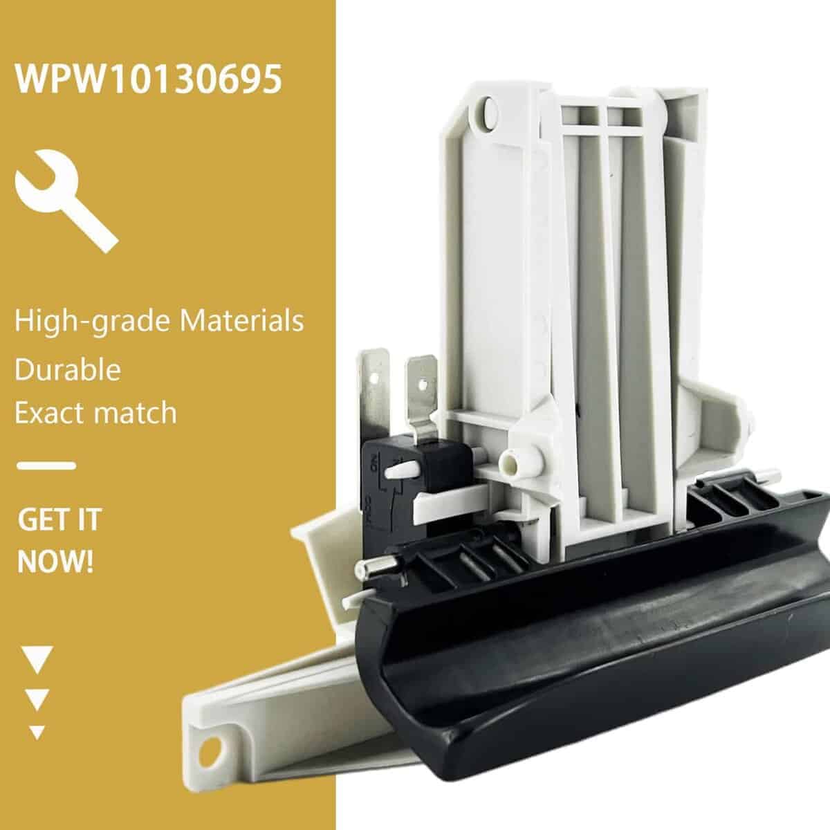 1. WPW10130695 – La manija de pestillo de la puerta del lavavajillas wpw10130695 se adapta a whirl-pool, may-tag y ken-more. El pestillo de la puerta de may-tag puede mantener su lavavajillas cerrado firmemente cuando está funcionando. Si el pestillo de la puerta del lavavajillas quiet series 200 de may-tag estaba roto, puede reemplazarlo con WPW10130695. Le ahorrará mucho dinero comprando un nuevo pestillo de puerta.