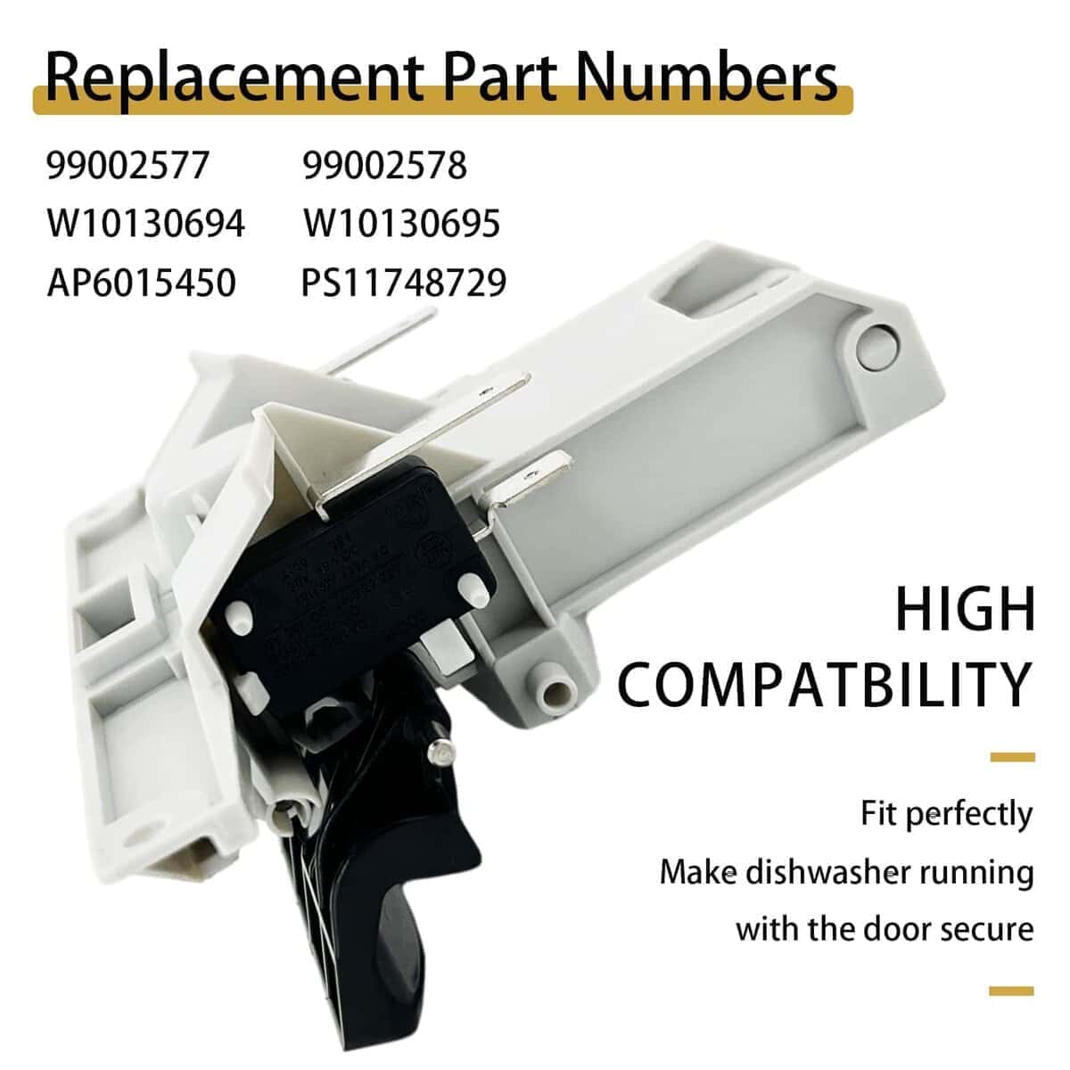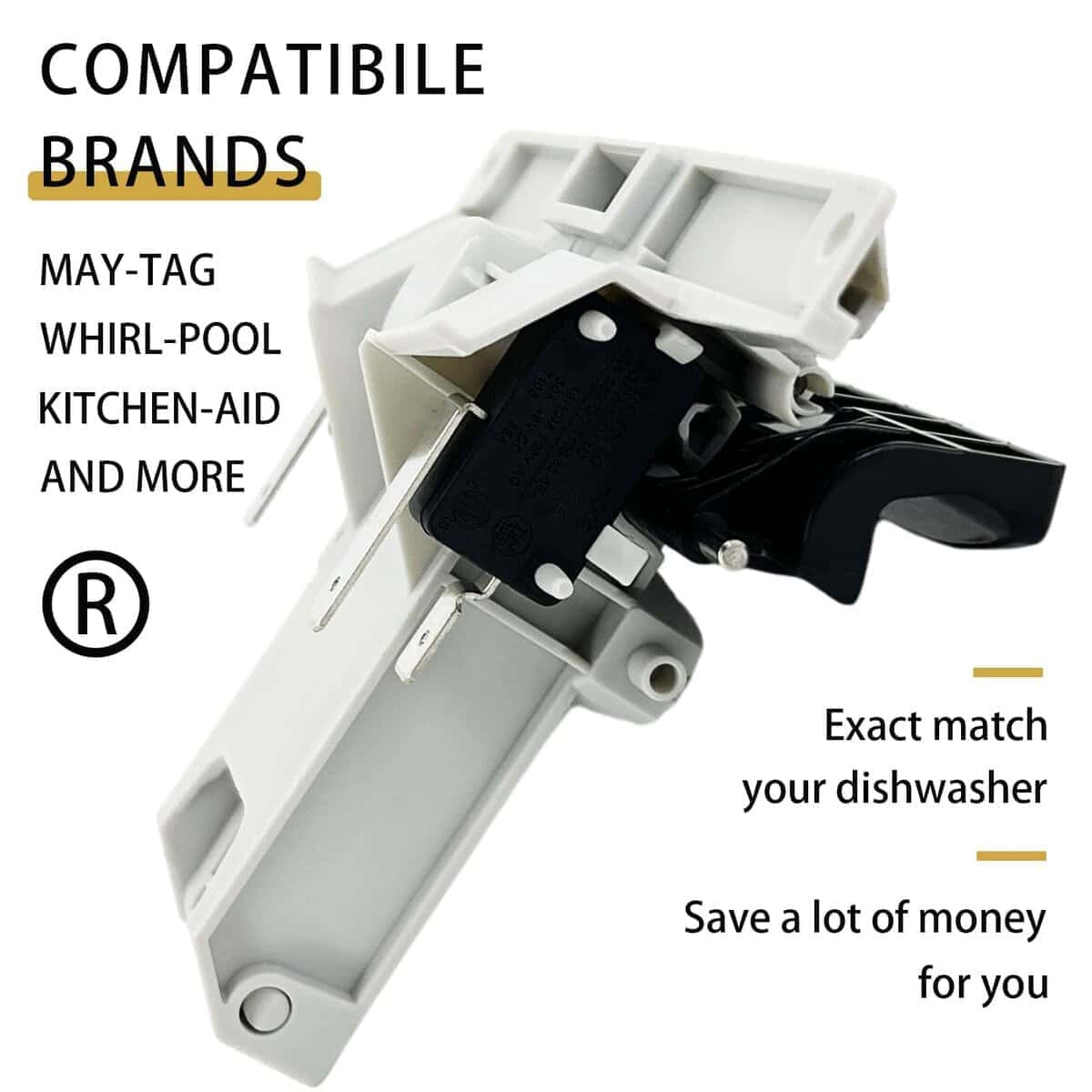3. Pestillo para lavavajillas – Compatible con marcas: Kitchen Aid, May-tag, Whirl-pool, Jenn-Air, Ken-more, A-mana, magic Chef, Ad-miral, Nor-ge. Se adapta a los siguientes modelos (no se enumeran todos los modelos aplicables): MDB8751BWQ MDBH750AWW MDBH940AWB MDBH940AWS MDBM755AWB MDBH750AWQ MDBH750AWB MDBM755AWQ MDBM755AWS MDBM755AWW MDBS661AWB MDBS661AWW MDBS661AWQ MDBTT50AWB MDBTT60AWW MDBTT75AWB MDBTT70AWS MDBTT75AWQ MDBTT70AWW.