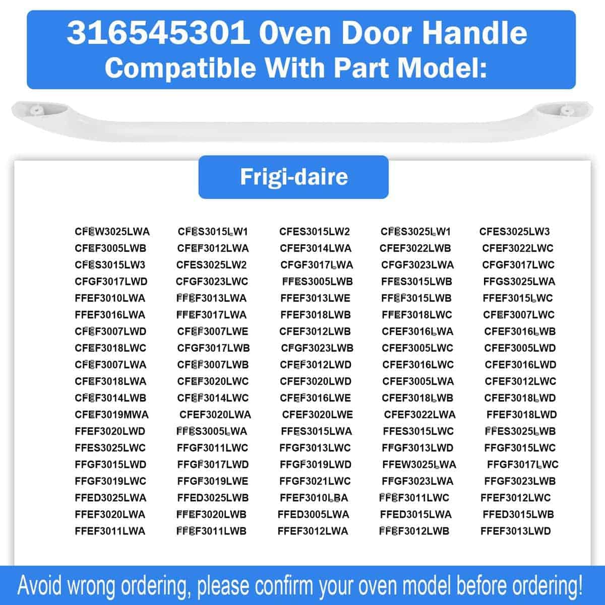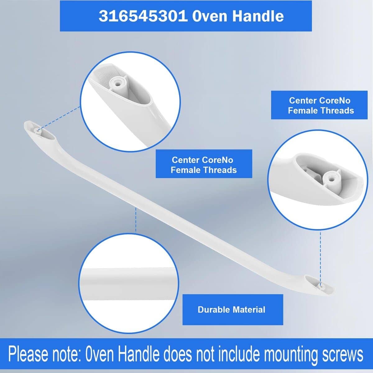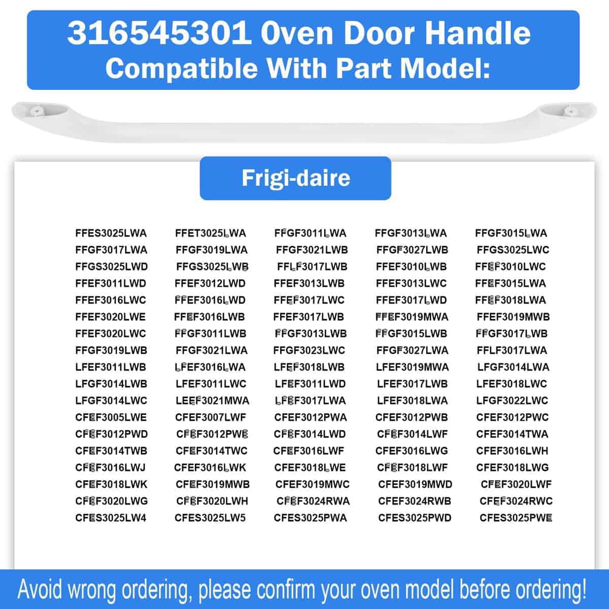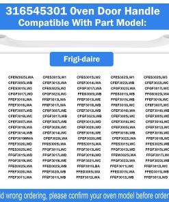 DESCRIPCIÓN LARGA: Manija de Puerta de Horno de Reemplazo PROOVEELLY 316545301 AP4527354 Compatible con Estufa de Gas/Eléctrica Frigi-daire Ken-More, Reemplaza PS2581854 EAP2581854, Blanco, Tornillos No Incluidos Con la manija de puerta de horno de reemplazo PROOVEELLY 316545301 AP4527354, podrás restaurar la funcionalidad de tu horno de manera rápida y sencilla. Esta manija es compatible con estufas de gas/eléctricas Frigi-daire Ken-more y reemplaza los modelos PS2581854 EAP2581854. ¡Asegúrate de confirmar el modelo de tu horno antes de ordenar para evitar confusiones! La instalación es simple y no requiere la ayuda de un profesional, solo necesitarás herramientas básicas. ¡Haz que tu horno vuelva a funcionar como nuevo con la manija de puerta de horno de reemplazo PROOVEELLY 316545301 AP4527354!