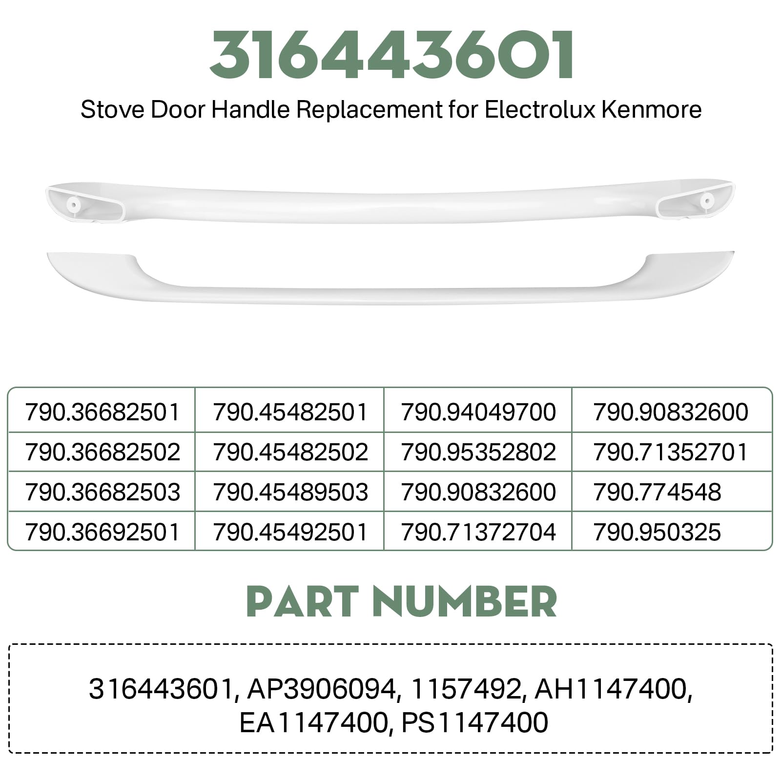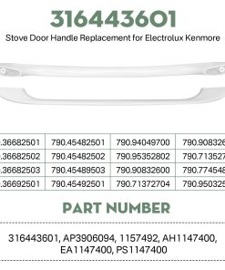 1. Número de parte de la manija de puerta de horno 316443601, AP3906094, 1157492, AH1147400, EA1147400, PS1147400. Compatible con Frigidaire Kenmore Electrolux.