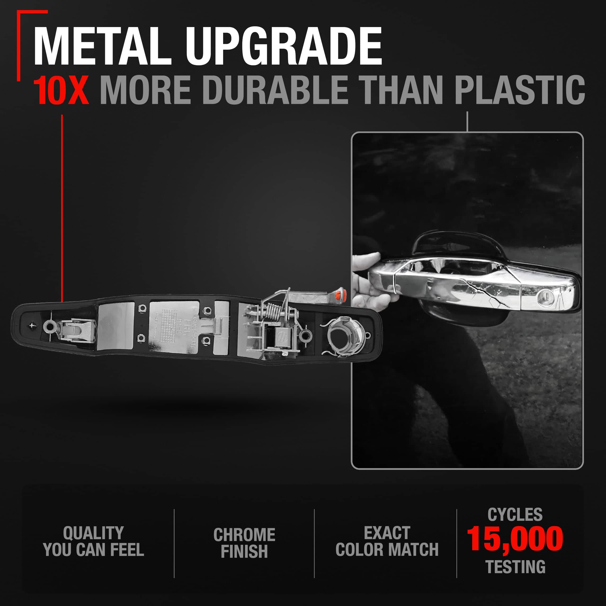 Hecho de un material de metal mejorado y carcasa de plástico, el acabado todo cromado de la manija asegura durabilidad a largo plazo y se adapta a la perfección al exterior de su vehículo. Diseñado para una instalación sencilla, esta manija de puerta externa permite un reemplazo rápido y sin complicaciones, lo que la hace ideal para el mantenimiento del vehículo por cuenta propia. Orgullosamente de propiedad y operación estadounidense en Detroit, MI, brindando un excepcional soporte al cliente en EE. UU. para su tranquilidad.