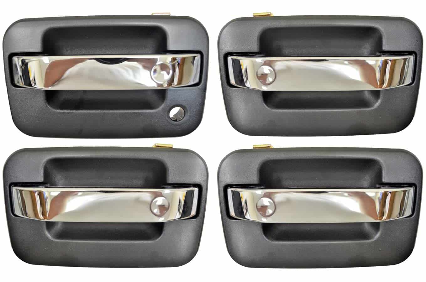 Manija de puerta exterior PT Auto Warehouse FO-3509MA-QPK – Texturizada en negro con palanca cromada – sin entrada sin llave, delantero/trasero izquierdo/derecho, juego de 4