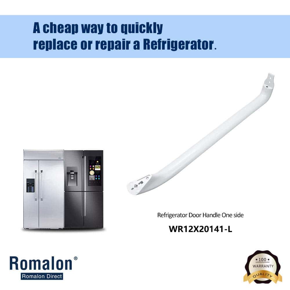 Manija de Puerta lateral WR12X20141 L WR12x22148 para Refrigerador – Repuesto de Manija Inferior de la Puerta de Romalon. El paquete incluye 1 manija de puerta lateral WR12X20141 L. Longitud de la manija: Aproximadamente 19 pulgadas. La manija es para el lado del refrigerador (manija inferior de la puerta para refrigerador) Inclinado a la IZQUIERDA. Antes de realizar la compra, verifique las medidas en la imagen y la descripción. Nota importante: No se incluyen instrucciones, tornillos ni tapas. Solo se incluye la manija de la puerta.