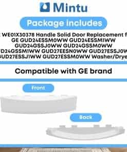 La manija de puerta WE01X30378 es un repuesto de alta calidad para lavadoras y secadoras GE. Esta manija sólida está hecha de plástico ABS de alta calidad, lo que la hace resistente a altas temperaturas y asegura una larga vida útil. Es un reemplazo perfecto para los modelos GE GUD24ESSM0WW, GUD24ESSM1WW, GUD24GSSJ0WW, GUD24GSSM0WW, GUD24GSSM1WW, GUD27EESN0WW, GUD27ESSJ0WW, GUD27ESSJ1WW, GUD27ESSM0WW, entre otros. La instalación de la manija de puerta es muy sencilla y no requiere herramientas adicionales. Simplemente retire la manija anterior con un destornillador de cabeza plana y coloque la nueva manija en su lugar. Este producto ha sido probado en fábrica y cumple con los estándares de calidad del mercado. Si experimenta algún problema durante la instalación, no dude en ponerse en contacto con nosotros para recibir asistencia.