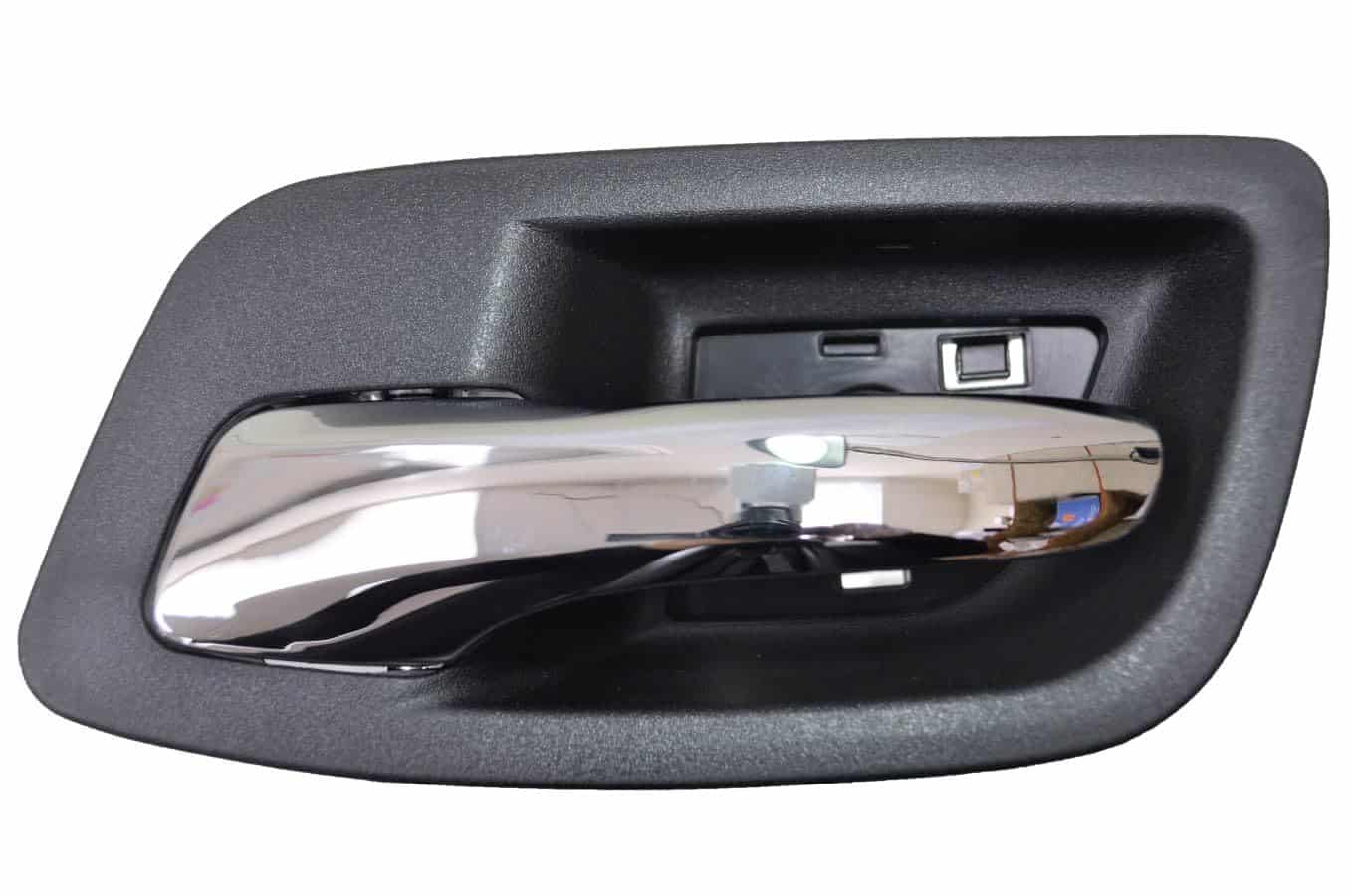 Manija interior de la puerta cromada con palanca negra y carcasa negra para la parte trasera izquierda del conductor. Reemplaza 1RE75DX9AC, 1RE77DX9AF, 1RE75DX9AB, 1RE77DX9AD, 1RE77DX9AD, 1RE77HL9AD. Diseñada para alinearse con las especificaciones originales, garantizando un funcionamiento impecable. Sometida a pruebas rigurosas para garantizar durabilidad y resistencia. Resistente a temperaturas extremas y desgaste general, garantizando un rendimiento fiable a lo largo del tiempo.