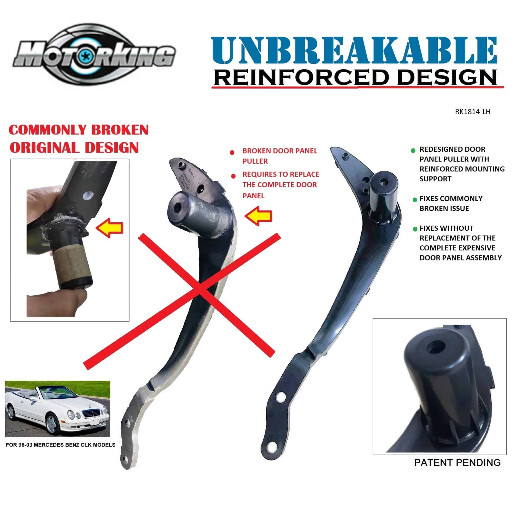 Nuestro rediseño agregó 8 soportes adicionales para reforzar la zona débil que causa el problema común de rotura. Asegura una durabilidad prolongada que supera el diseño OE. Reparar en lugar de reemplazar el costoso panel de puerta completo.