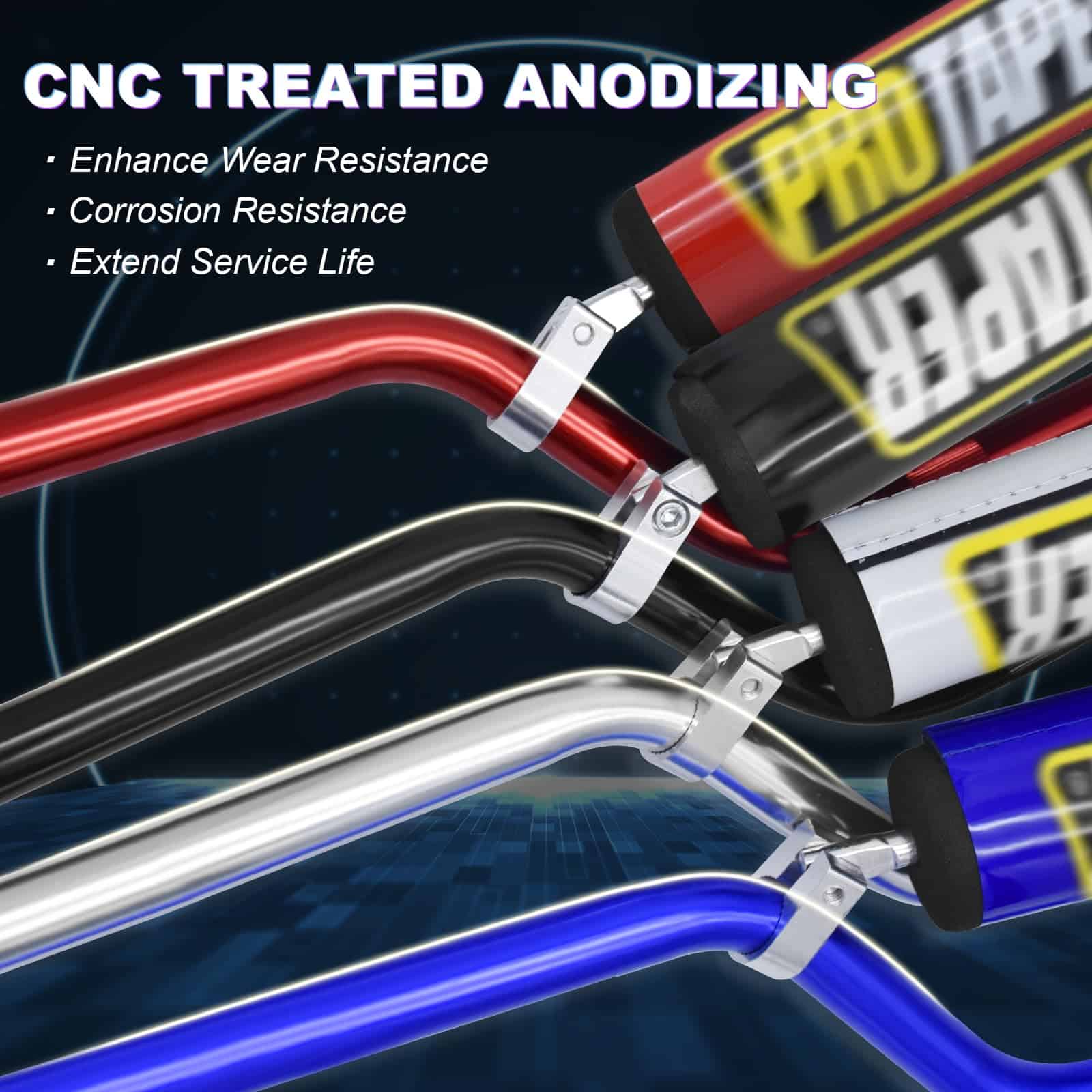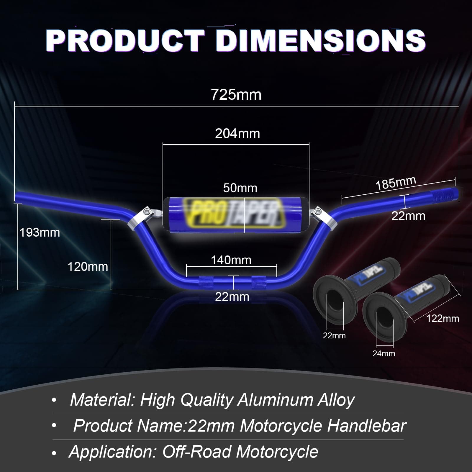 Manillar azul de 7/8″ Wai Danie + Puños + Protector de