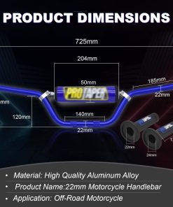 Manillar azul de 7/8″ Wai Danie + Puños + Protector de Manillar CRF 50 70 Pit Pro Dirt Bike 22MM Motocicleta Barra de Aluminio Manillar Suciedad Pit Bike ATV Quad & Barra Transversal. Los manillares están hechos de aleación de aluminio de alta calidad. Este material proporciona un rendimiento estable y durabilidad para un uso a largo plazo. (Para más detalles, consulte la imagen de tamaño). Ajuste impecable hecho a los estándares originales, para que puedas pedirlo directamente para reemplazar el desgastado y roto. (Nota: Para más detalles, por favor lea la descripción abajo y confirme el ajuste antes de ordenar). Buen servicio postventa Como vendedor responsable, nuestra empresa ofrece productos y servicios confiables. Si tiene alguna pregunta, por favor contáctenos directamente. Nuestro personal resolverá el problema en días laborables en 24 horas.