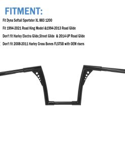 Especificaciones: Tipo: Manillar de motocicleta Condición: Nuevo Color: Negro Material: Hecho de hierro premium y material recubierto de polvo Compatibilidad: Compatible con Harley Softail FLST, FXST, Sportster XL, incluyendo modelos con acelerador electrónico y cualquier aplicación personalizada (Nota: Este manillar no es compatible con Road Glide 2015 2016) Paquete: 1 pieza de manillar de 12″ Nuestros servicios: Nuestro objetivo es la satisfacción del cliente al 100%. Por favor, contáctenos si tiene alguna pregunta.