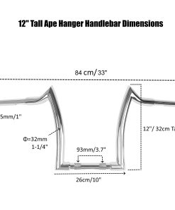 Especificaciones: Tipo: Manillar Ape Condición: Nuevo Color: Cromo Material: Hecho de aluminio macizo de alta resistencia y acero de calidad premium Características: Barras personalizadas, brindan un lugar más cómodo para el conductor Amo tu tiempo en la carretera, gran sensación para los conductores al viento Instalación fácil, te permite quitarlos fácilmente cuando no los necesitas. Compatibilidad: Compatible con manillares de 12″ para motocicletas con un diámetro de 1.25″ Compatible con Harely Davison Softail FLST, FXST, Sportster XL 883, Sportster XL 1200, Road Glide 1998-2013, Road King 1994 en adelante. (Nota: No compatible con Harley Electra Glide, Street Glide; Road Glide 2014 en adelante, Cross Bones FLSTSB 2008-2011 con elevadores OEM) Paquete: 1 pieza de manillar (como se muestra en la imagen)