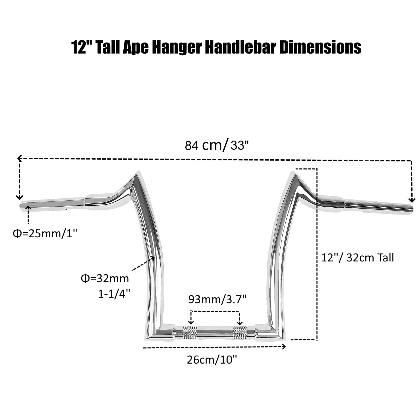 Manillar de 12″ de Elevación 1.25″ Cromado para Harley