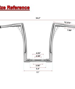 Manillar de 14″ en cromo diseñado para mejorar la conducción y la apariencia agresiva en tu Harley. Fabricado en acero de alta calidad y durabilidad, con un diámetro de 1-1/4 pulgadas y un ancho total de 35.5 pulgadas. Fácil instalación sin necesidad de perforaciones adicionales. Incluye 1x Manillar de Mono Ape.