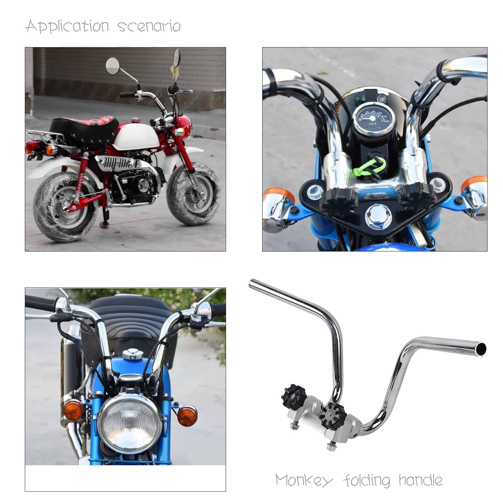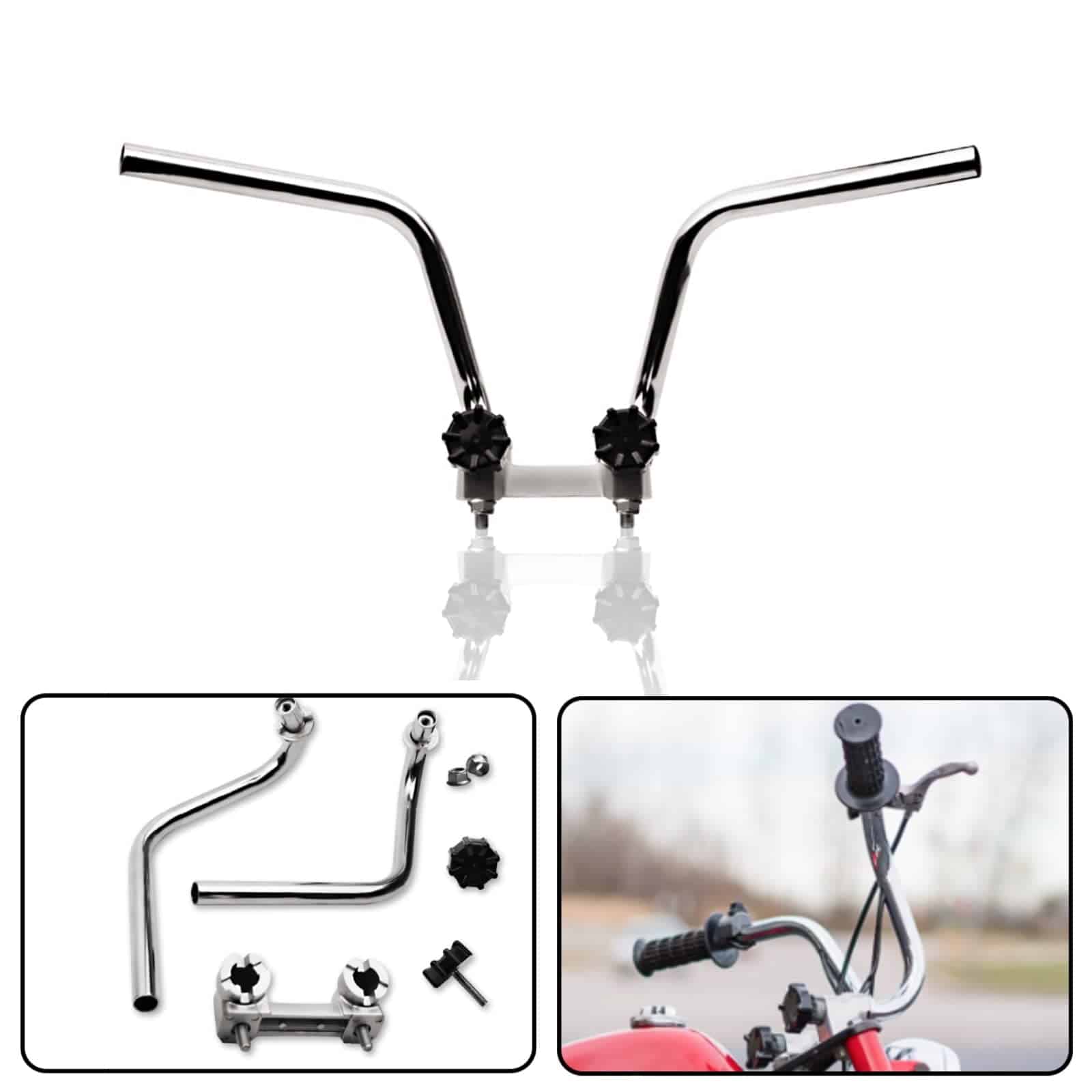 Manillar Divisor de Manillar de Motocicleta para Honda Z50 Z50 STYLE Z50J MONKEY REPLICA DAX/CT70 Z50R G50F GOLF50 MONKEY BIKE PARTS con perilla Ajuste: 1978/Honda/CT70/Trail 1977/Honda/CT70/Trail 1976/Honda/CT70/Trail 1975/Honda/CT70/Trail 1974/Honda/CT70/Trail 1973/Honda/CT70/Trail 1972/Honda/CT70/Trail 1978/Honda/Z50A/Mini Trail 1977/Honda/Z50A/Mini Trail 1976/Honda/Z50A/Mini Trail 1975/Honda/Z50A/Mini Trail 1974/Honda/Z50A/Mini Trail 1973/Honda/Z50A/Mini Trail 1972/Honda/Z50A/Mini Trail Especificaciones de Tamaño: Diámetro del tornillo del soporte — 10 mm Longitud del tornillo del soporte — 20 mm Distancia entre tornillos del soporte (HC-HC) — 100 mm Altura de manillar (máximo) — aprox. 24 cm Ancho (máximo) — aprox. 57.5 cm Color: Acero inoxidable cromado Este repuesto posventa se utiliza en HONDA Z50 Z50 STYLE REPLICA DAX/CT70 G50F GOLF50 Paquete Incluye: 1 juego de manillar (izquierdo/derecho) 1 x soporte de manillar 2 x tornillos de fijación Nota: A. Por favor, revise cuidadosamente las fotos del artículo, el modelo y el tamaño antes de comprar. O déjenos mensajes para recibir ayuda si no está seguro sobre la adaptación. B. Productos de la marca FLYPIG, de alta calidad, No original, Reemplazo directo.