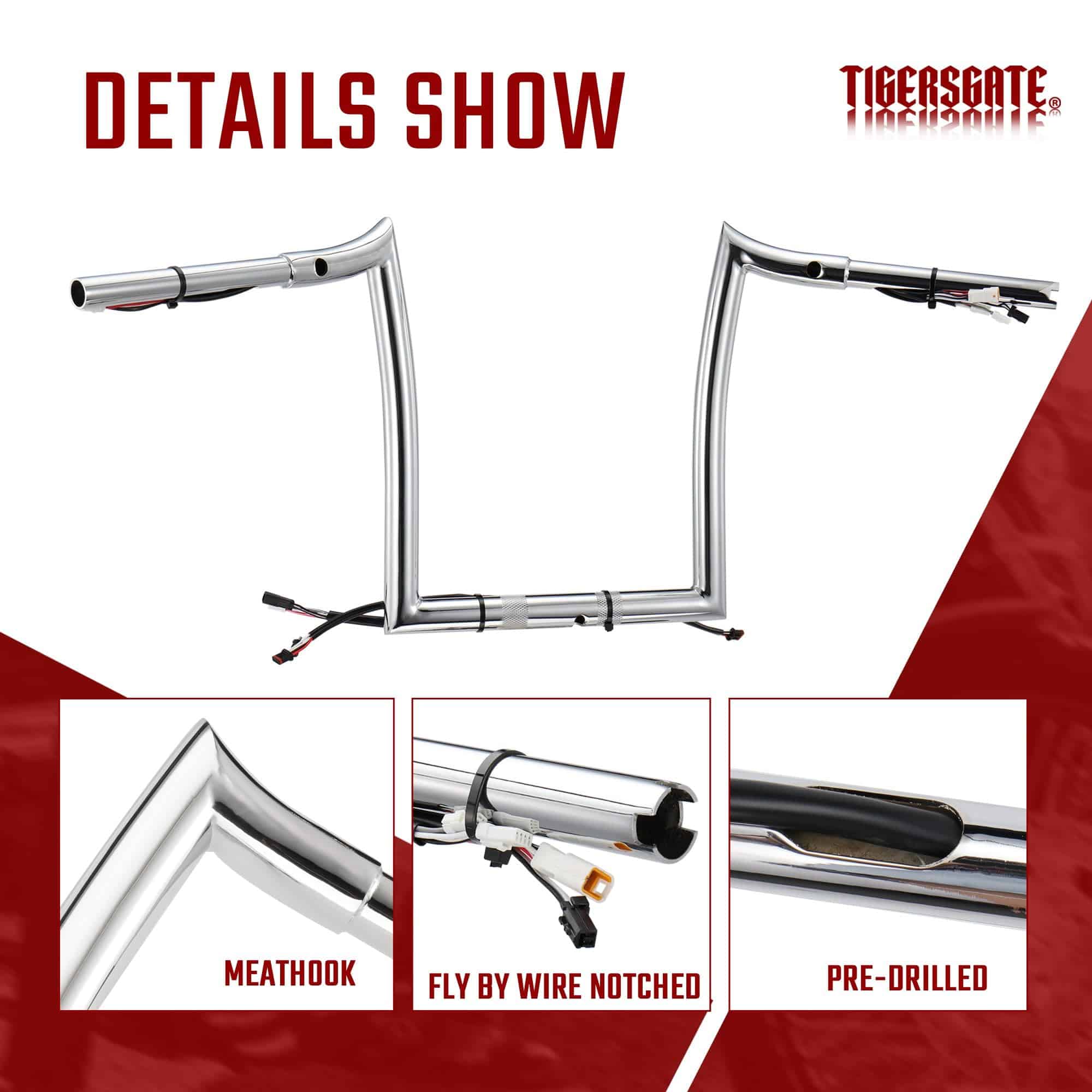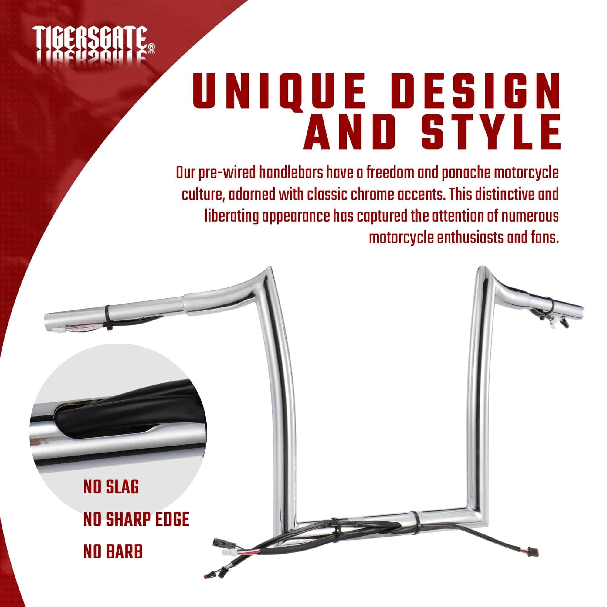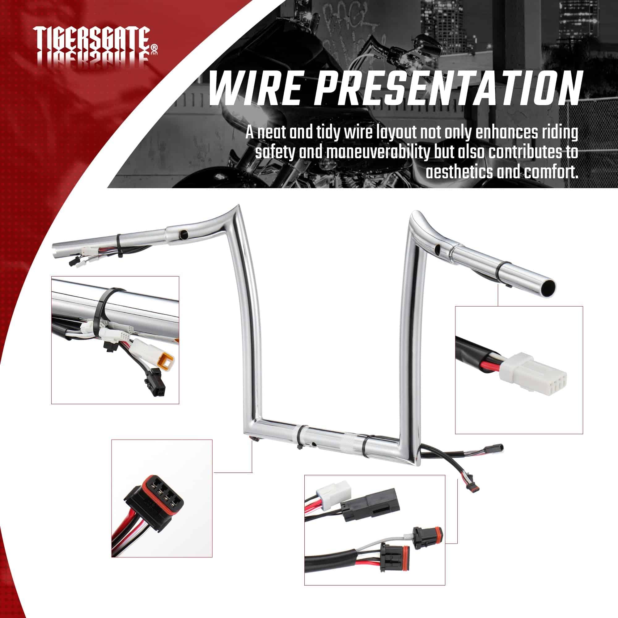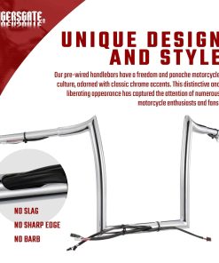 Si está buscando mejorar el manillar de su motocicleta, nuestros Ape Hangers pre-cableados para Road Glide son una excelente opción. Con su construcción duradera, fácil instalación y diseño llamativo, estos manillares seguramente harán que su motocicleta se destaque entre la multitud. El kit de cables incluido y el alambre de tracción hacen que la instalación sea sencilla, permitiéndole salir a la carretera más rápido y con menos problemas. Si desea mejorar la seguridad y apariencia de su motocicleta, estos manillares definitivamente valen la pena considerar.