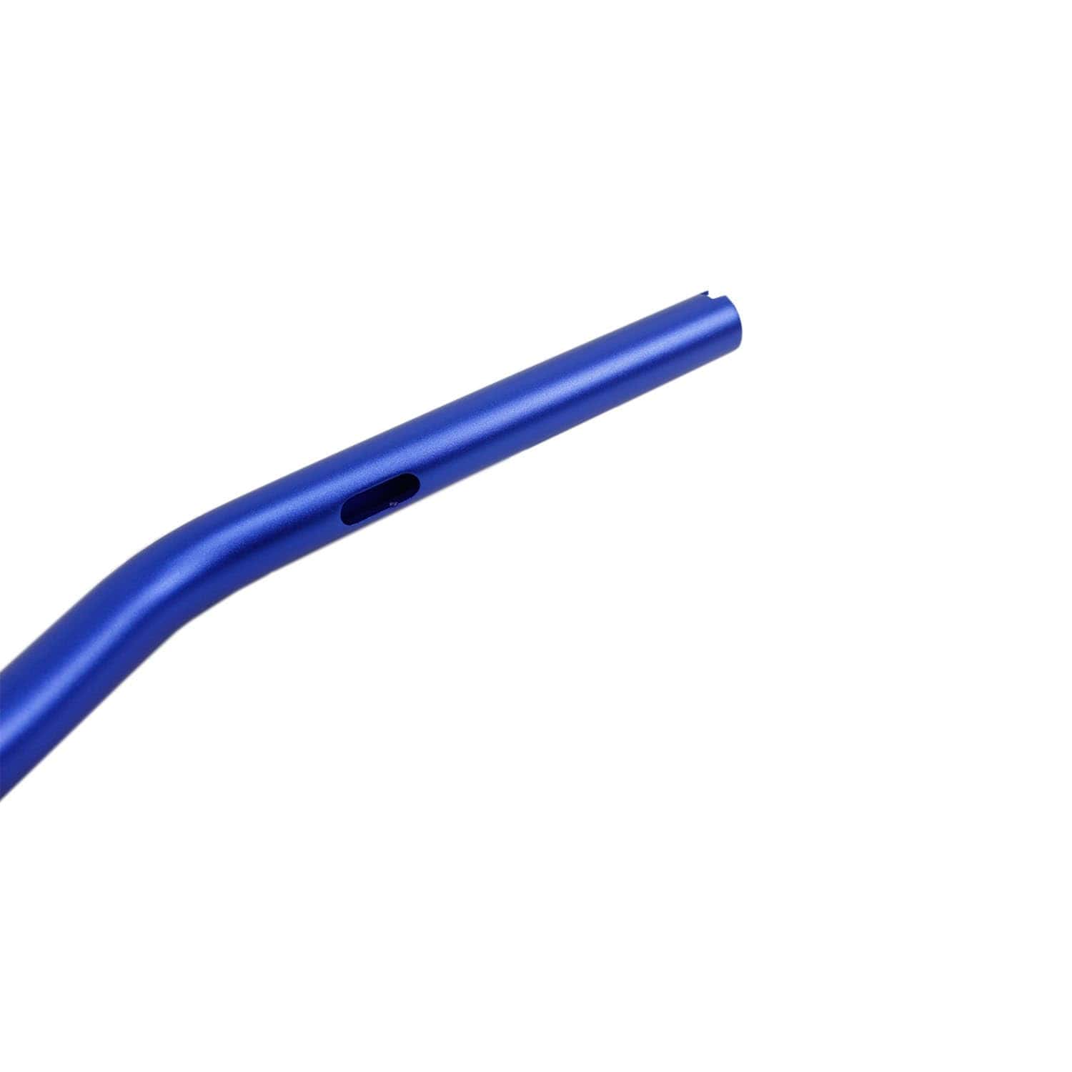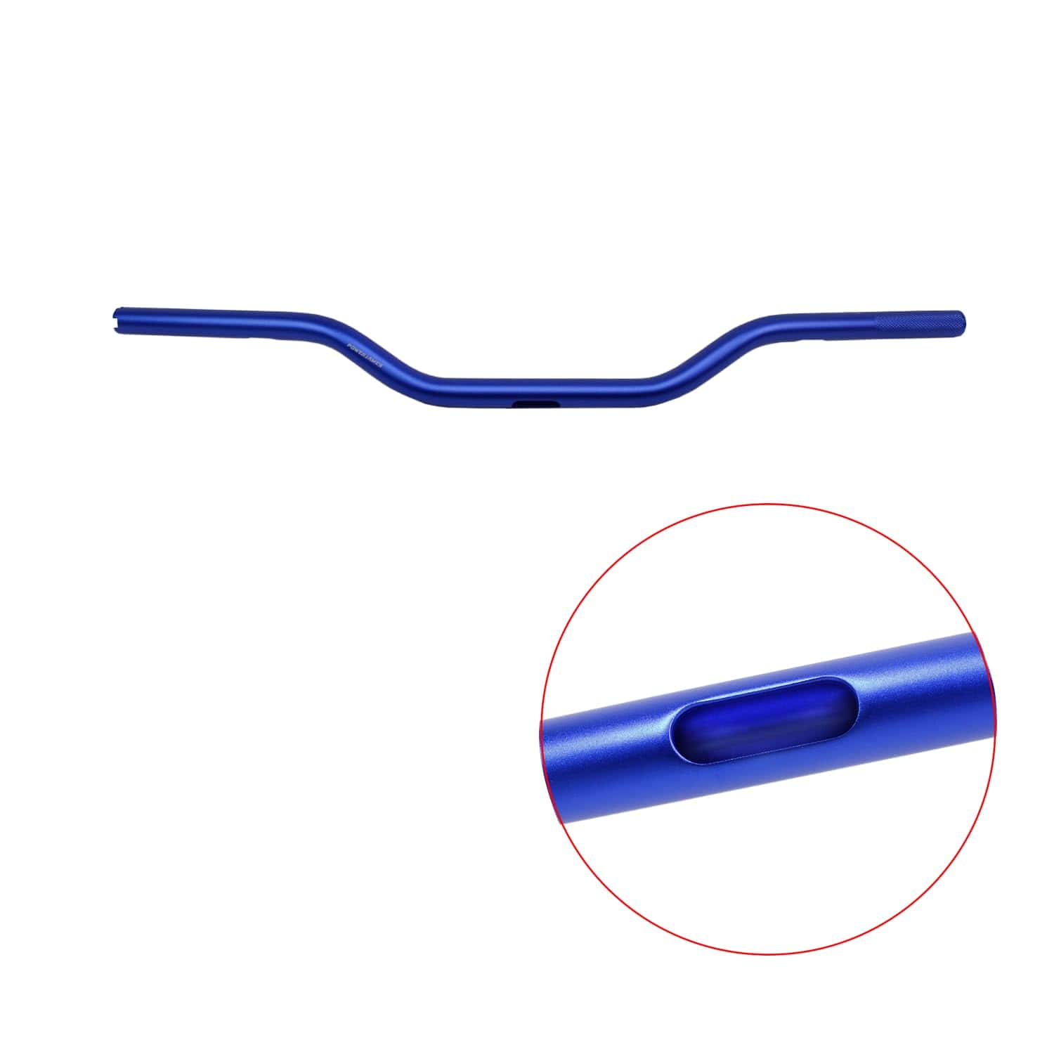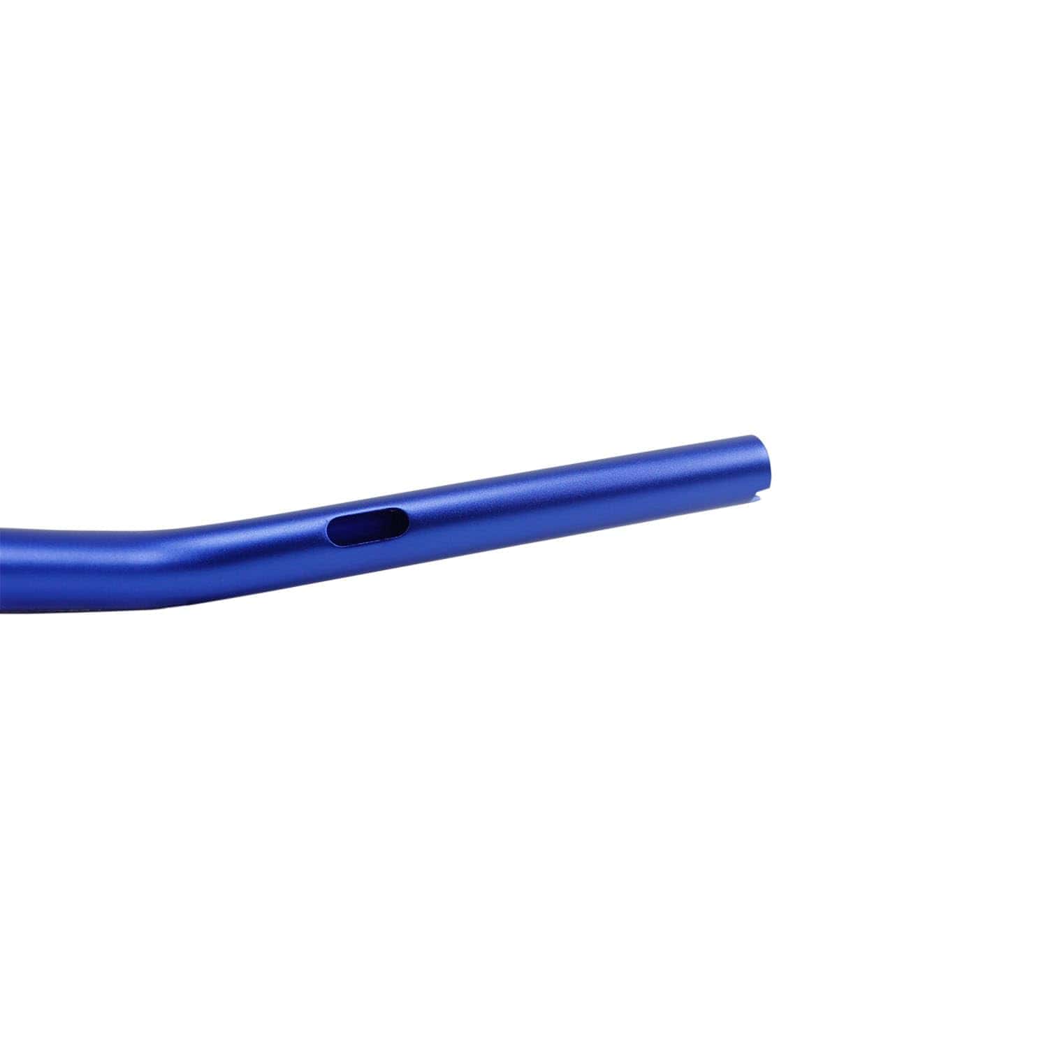 Fabricado completamente en aluminio 6061 T6, que es más duro y más ligero que el acero inoxidable, hierro. Terminado con chorro de arena y anodizado azul. Tipo recto corto, que es fácil de controlar para los conductores y se ve hermoso con un kit elevador más alto. Perforado previamente para cables internos, con muescas tanto para modelos de puños de acelerador by wire como por cable. Ancho total: 30.0 pulgadas. Retroceso: 3.0 pulgadas. Funciona con elevadores de manillar de 1.0″.
