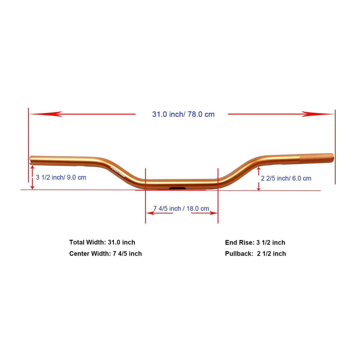 Hecho de 100% aluminio 6061 T6, más duro y ligero que el acero inoxidable y el hierro. Pulido sin pintura ni recubrimiento en polvo. Tipo de manillar recto corto, fácil de controlar para los conductores y se ve muy bonito con un kit de elevadores más altos. Perforado previamente para cables internos, muescas tanto para modelos de acelerador electrónico como de acelerador por cable. Ancho total: 30.0 pulgadas Retroceso: 3.0 pulgadas Funciona con elevadores de manillar de 1.0″.