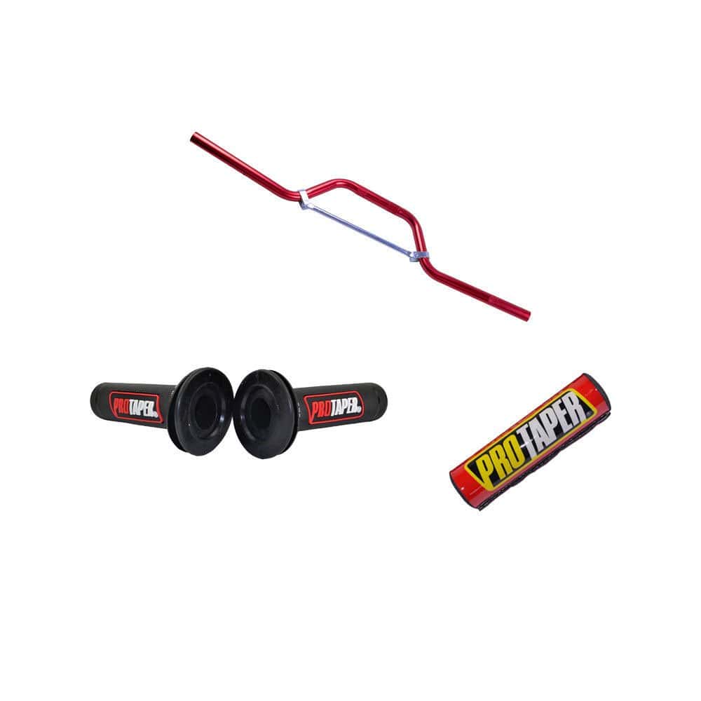 Manillar Rojo 7/8″ + Puños + Protector de Manillar CRF 50 70 Pit Pro Dirt Bike 22MM Motocicleta Manillar de Aluminio para Dirt Pit Bike ATV Quad & Cross Bar
