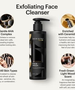 Rutina de cuidado de la piel diseñada para hombres, que incluye un limpiador facial exfoliante, humectante facial diario y suero iluminador. Se ha probado dermatológicamente para proporcionar una piel más suave y saludable. El limpiador facial exfoliante ayuda a eliminar las células muertas de la piel con un suave complejo de AHA para revelar una piel más brillante y suave sin irritación. El humectante facial diario ofrece una hidratación ligera y duradera sin sensación grasosa, perfecta para tu rutina de cuidado de la piel matutina o nocturna. El suero iluminador aborda la piel desigual y opaca con un potente complejo de vitamina C para lograr una piel visiblemente más brillante y suave. Disfruta de un aroma fresco y masculino con notas de botánicos verdes y maderas ligeras.