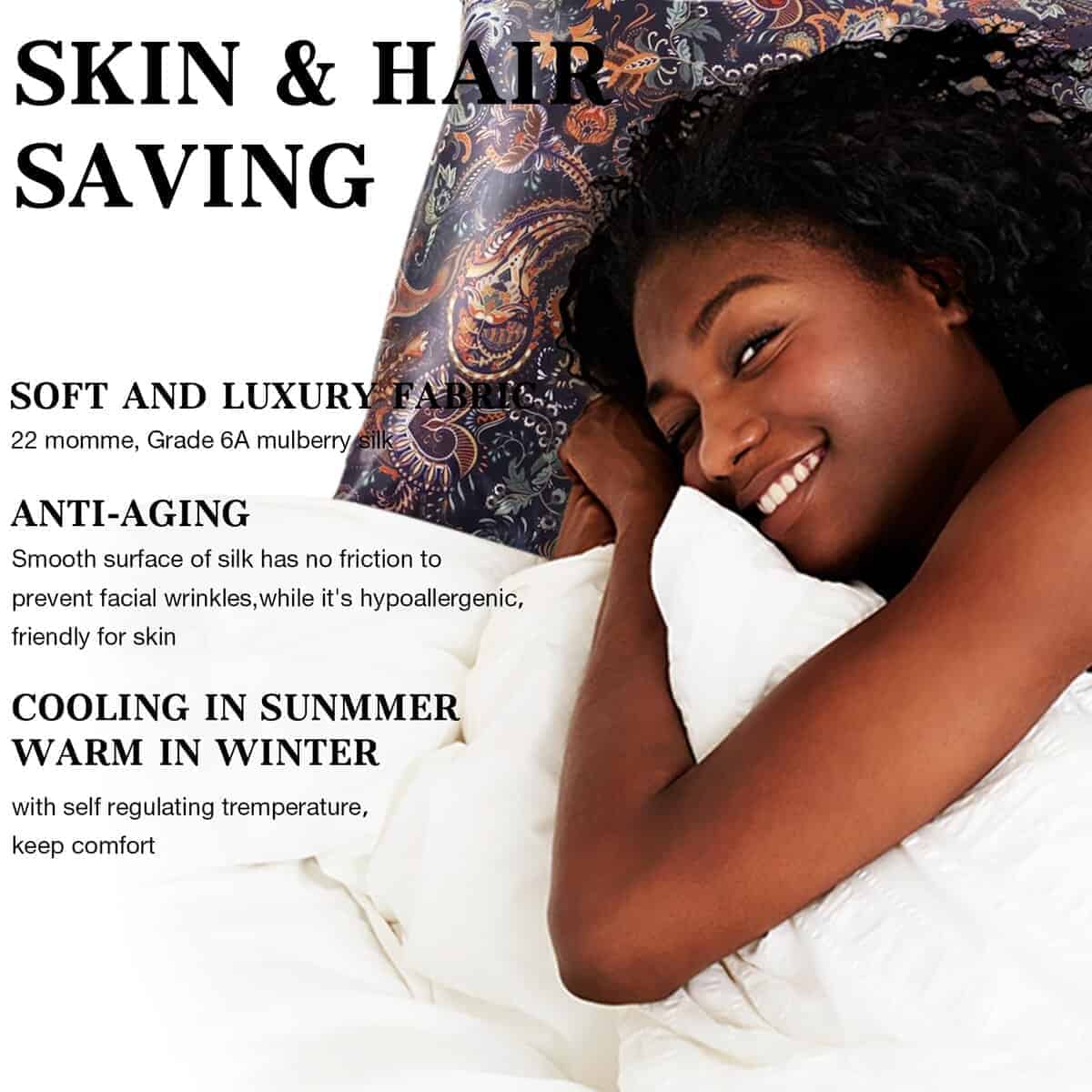 1. Funda de Almohada de Seda 6A: Hecha de seda de morera de 22 momme, te brinda el tacto, salud y apariencia distintiva. Aún mejor, nuestra funda de almohada de seda 100% pasó la certificación OEKO, por lo que tenemos la confianza de ofrecerte fundas de almohada de seda de alta calidad. 2. Fundas de Almohada de Seda para Cabello y Piel: Di adiós al pelo seco y a las arrugas en la cara. El tacto suave puede reducir la fricción en un 58%. Nuestras fundas de almohada de seda son hipoalergénicas y más seguras para la piel y el cabello. A diferencia del algodón, poliéster o fibra de satén, la seda es antiestática, no hace bolitas, refrescante en verano, cálida en invierno. 3. Más Diseños: No solo fundas de almohada de seda sólida. Tenemos una variedad de fundas de almohada de seda estampadas, como estrellas, paisley, flores, jardín, leopardo, vintage, temática de sirena, etc. Funda de Almohada de Seda de Tamaño Estándar (20″x26″), Funda de Almohada de Seda de Tamaño Queen (20″x30″) y Funda de Almohada de Seda de Tamaño King (20″x36″). 4. Cierre de Cremallera Oculta: Fácil de colocar la almohada y evita movimientos. No se rompe fácilmente. Esperamos que puedas ver nuestra sinceridad en los detalles: el color de la cremallera combina con las fundas de almohada de seda celestiales, no es un diseño casual de línea de ensamblaje. 5. Gran Regalo: Bienvenido a las páginas de la tienda MANSPHIL, nuestras fundas de almohada de seda celestial son muy lujosas y vienen con un bonito empaque, un regalo ideal para cumpleaños, Navidad, Acción de Gracias, Día de San Valentín para amigos o familiares