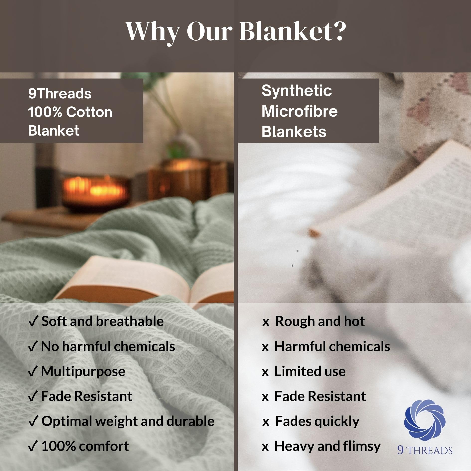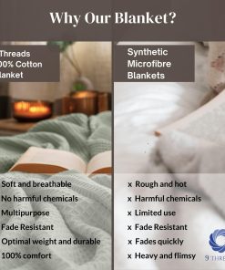 1. Manta Ligera 100% Algodón: Hecha de algodón premium y transpirable para mayor comodidad durante todo el año. Perfecta como manta de verano o para colocar encima en invierno para mantenerte abrigado sin sobrecalentarte.