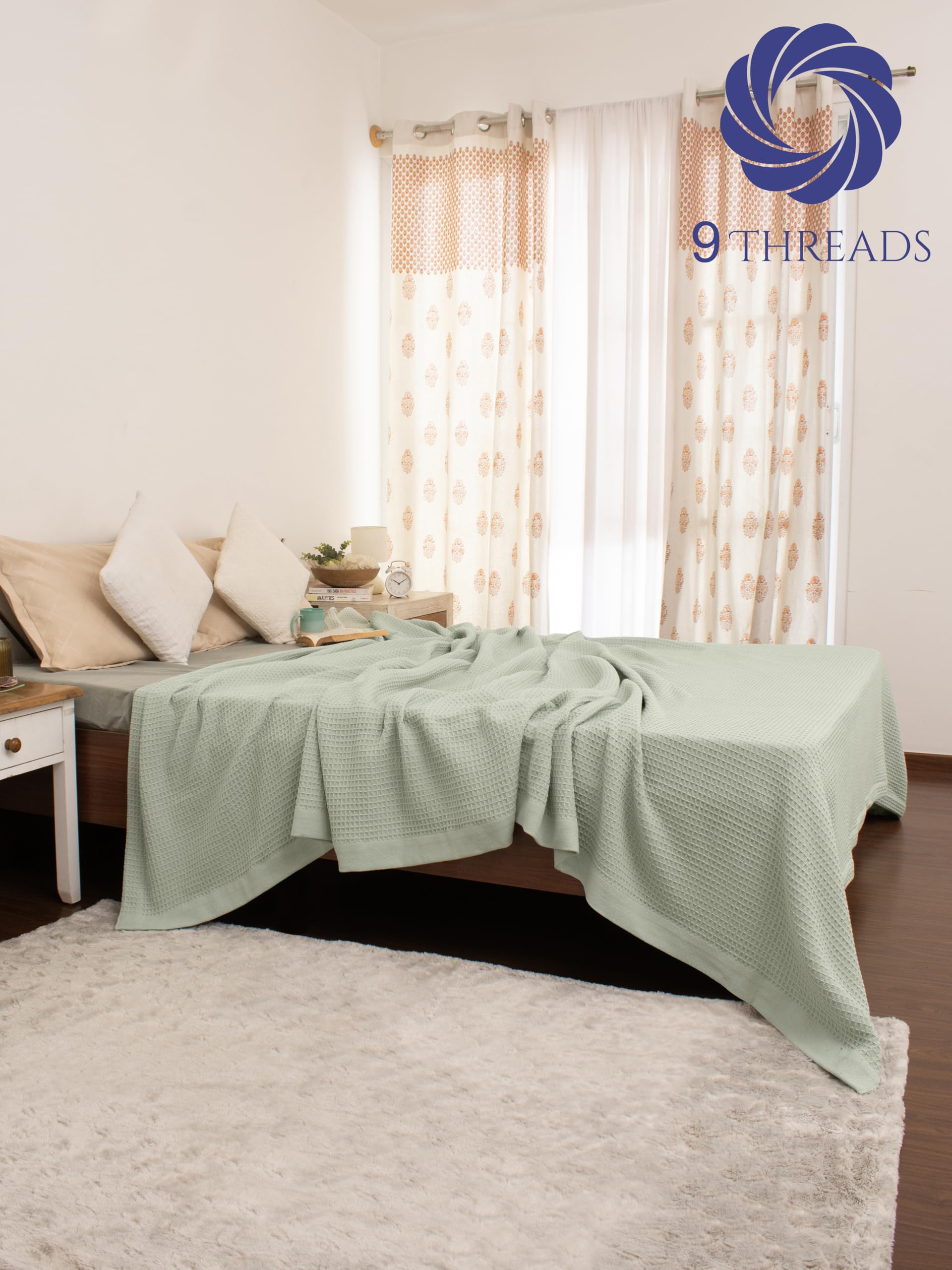 Manta 100% Algodón de Tejido en Espiga en Color Verde