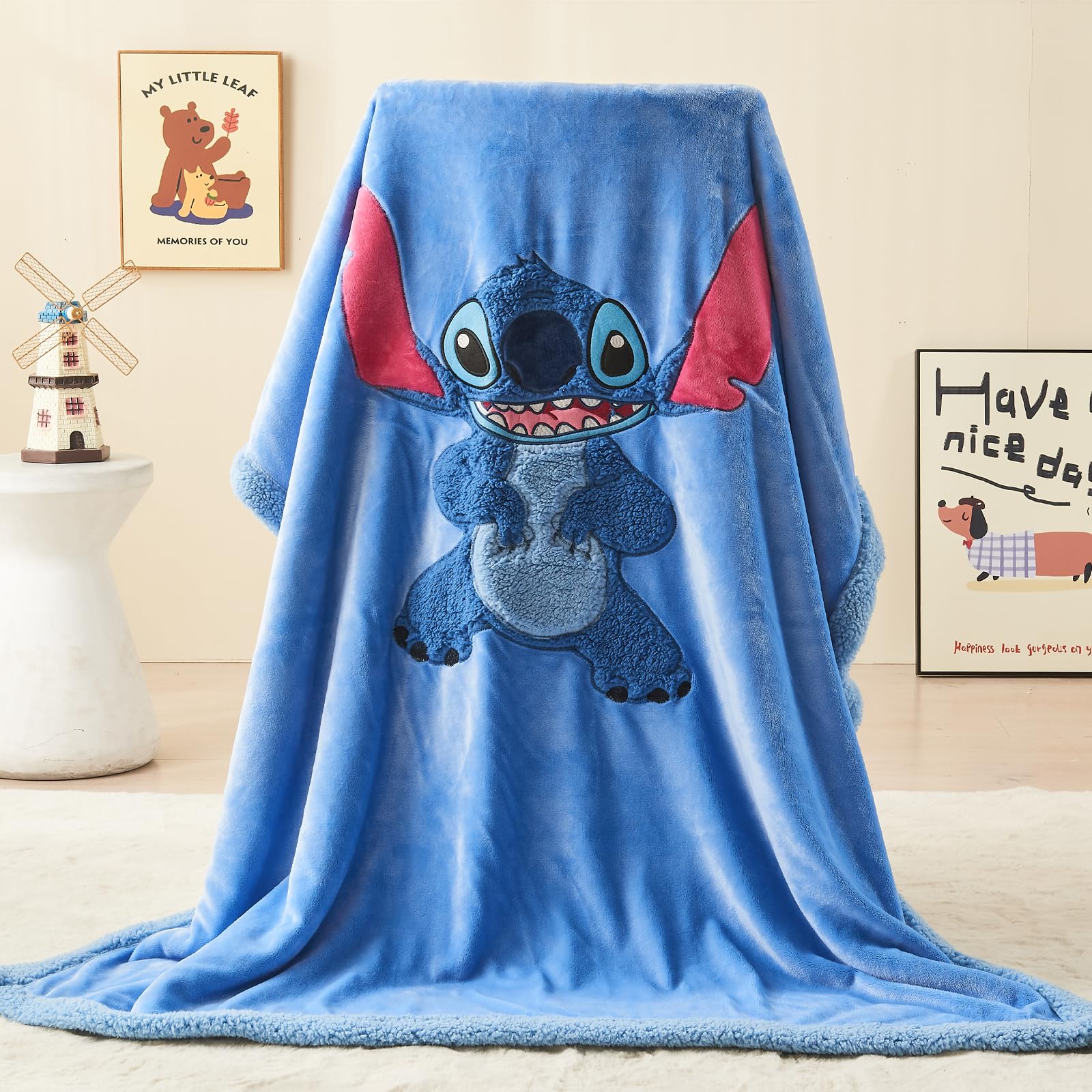 3. Diversión y Amor: La manta presenta un adorable personaje de dibujos animados bordado en el lado de franela, agregando un toque juguetón que a tus pequeños seguramente les encantará. Los colores vibrantes y los detalles intrincados del bordado hacen que esta manta sea una pieza llamativa que iluminará cualquier habitación.