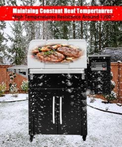 Manta Aislante Térmica para Parrilla Traeger Silverton 620, Parrilla de Pellets de Madera Traeger 620, Parrilla Traeger TFS62GVF para Invierno, Mantenga el Calor: La manta aislante térmica para parrilla es el accesorio perfecto para mantener la temperatura de su parrilla Traeger estable durante todo el año. Se adapta perfectamente a la parrilla de pellets de madera Traeger y ahumador, así como a la parrilla de pellets de madera Traeger TFS62GVF, brindándole una mejor experiencia en barbacoas sin preocuparse por la temperatura de los alimentos. Confeccionada con fibra de vidrio resistente al fuego, esta manta es capaz de soportar temperaturas de hasta 2000 grados Fahrenheit, lo que la hace ideal para su uso en exteriores, especialmente en invierno, con viento, nieve y frío. Su diseño magnético único permite que se adhiera de manera segura a su parrilla gracias a los imanes resistentes al calor incorporados, y su capa de PVC resistente a la intemperie garantiza un uso a largo plazo. Fácil de instalar, simplemente coloque la manta sobre la parrilla dejando que los imanes encajen en su lugar, sujete la hebilla de la correa y presione con firmeza. Cuando llegue el invierno, esta manta mantendrá las temperaturas de su parrilla estables, permitiéndole disfrutar de una barbacoa perfecta en cualquier momento. Además, la manta aislante le ayudará a ahorrar dinero al reducir la cantidad de pellets de madera utilizados durante la cocción, acortando el tiempo de cocción en los fríos inviernos. Desde un 25% hasta un 50% menos de pellets de madera durante el proceso de ahumado, y un 20% menos de tiempo de cocción, el ahorro en pellets justifica completamente la inversión. Sin embargo, esta manta de la parrilla solo debe usarse si su parrilla está equipada con un controlador digital. No use este producto si la temperatura exterior supera los 35 grados Fahrenheit. Disfrute de una mejor experiencia en barbacoas y ahorre dinero en pellets con esta manta aislante térmica para parrilla Traeger.