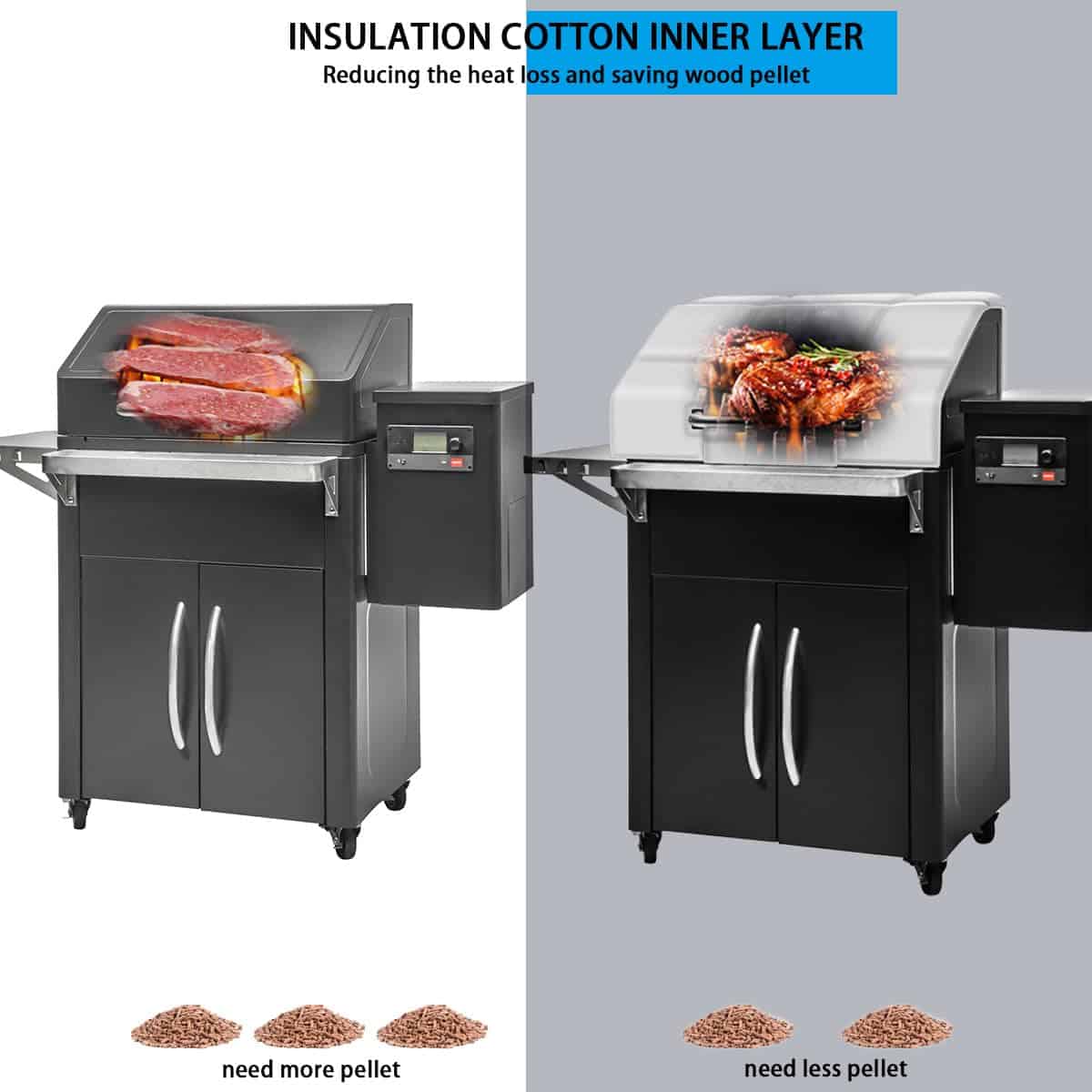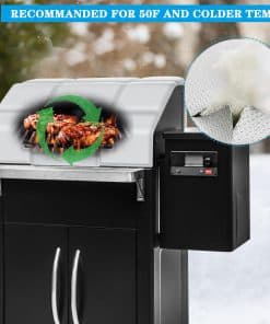 2. La manta aislante térmica está hecha de manta de fibra de vidrio ignífuga, resistente al calor, la superficie aislante térmica actúa como un amortiguador entre los elementos y la parrilla, reduciendo la cantidad de combustible quemado debido a las bajas temperaturas exteriores. ¡Alimenta tu parrilla sabiamente! Esta manta aislante térmica mantiene el calor de manera consistente en invierno, reduciendo el consumo de pellets de madera en un 25%-50% durante el ahumado y reduciendo los tiempos de cocción al menos un 20%.