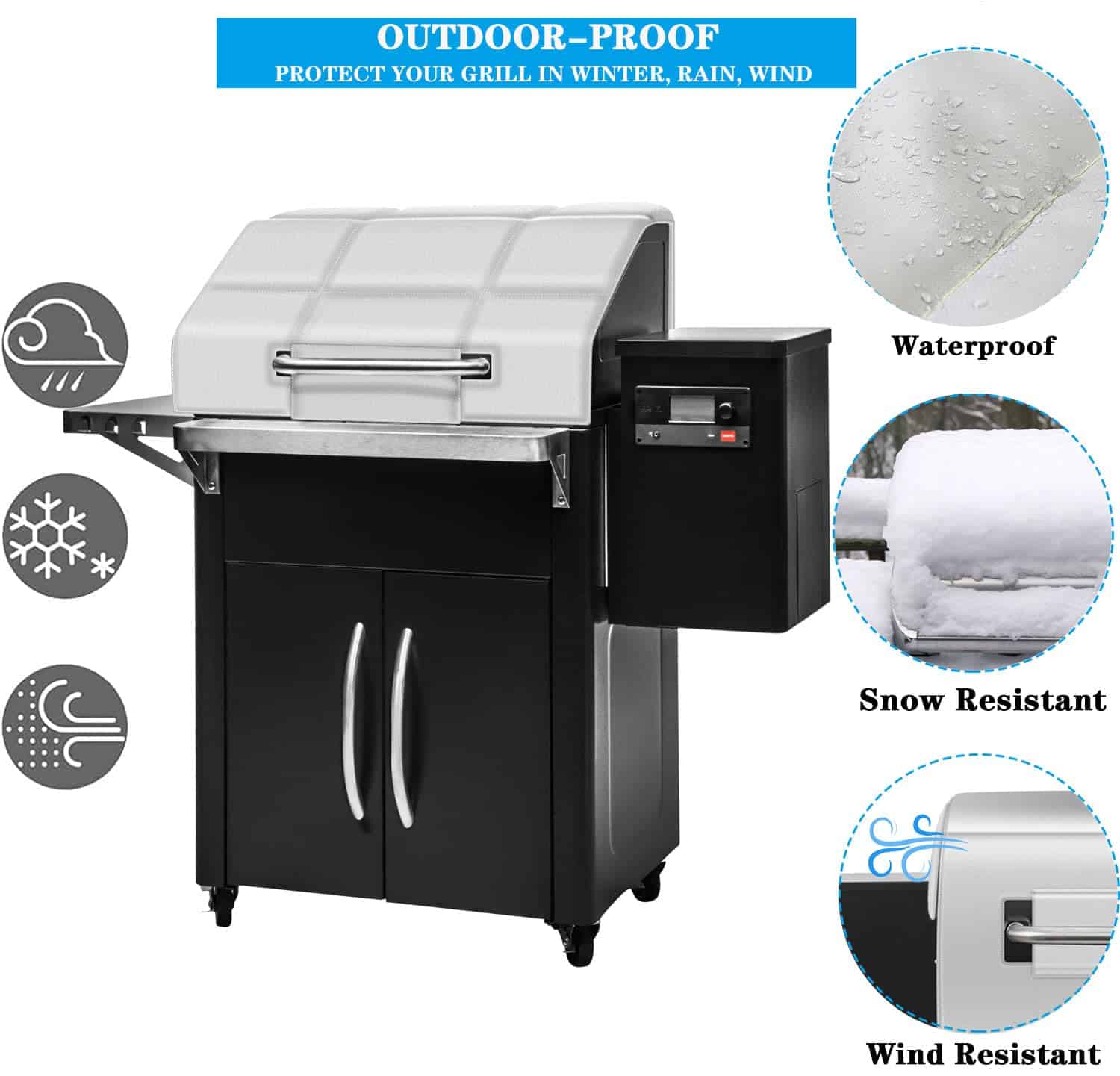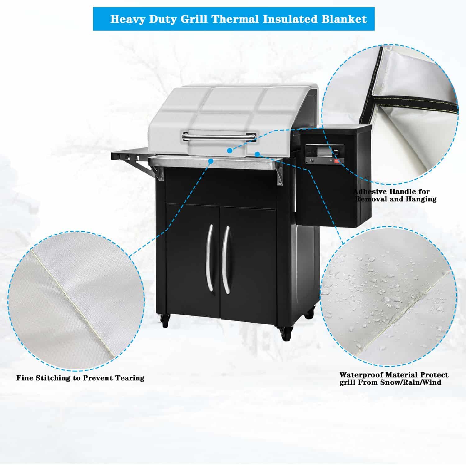 4. Reduce el Consumo de Pellets La manta térmica proporciona un buffers cálido y ayuda a proteger de elementos como la nieve y la lluvia mientras asas. La Manta Aislante ayuda a garantizar temperaturas consistentes en condiciones extremadamente frías. La manta aislante también garantiza que no desperdicies pellets cuando el clima se vuelve frío, para que tu Parrilla funcione de manera óptima.