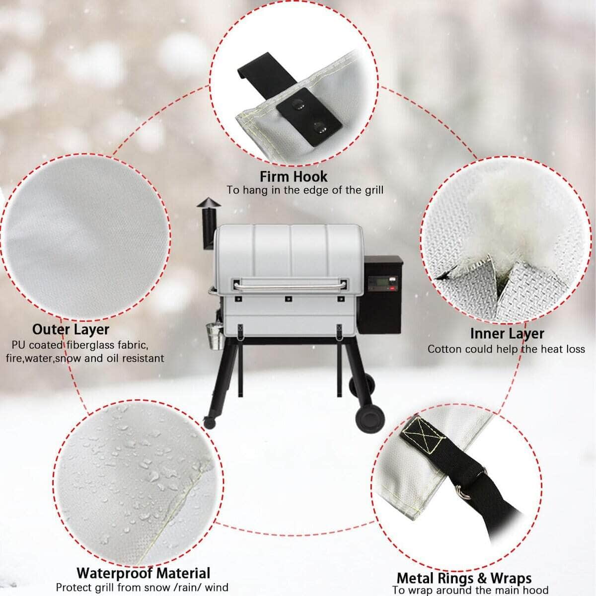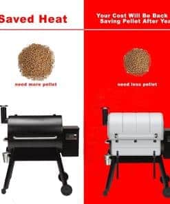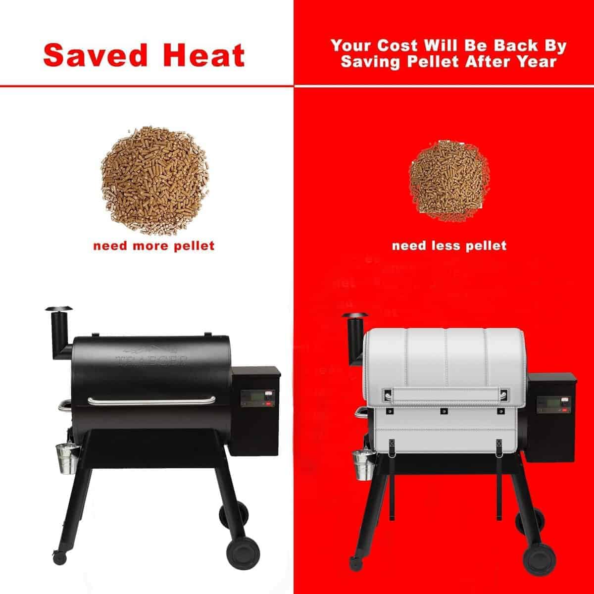 4. Ahorra Dinero – La manta aislante puede mantener las temperaturas de la parrilla estables. También puede reducir la cantidad de pellets utilizados durante la cocción, acortar el tiempo de cocción en nuestros fríos inviernos. Por lo menos 25%-50% menos de pellets de madera durante el proceso de ahumado y reducción del 20% del tiempo de cocción. Ahorrar dinero en pellets vale la pena la inversión.